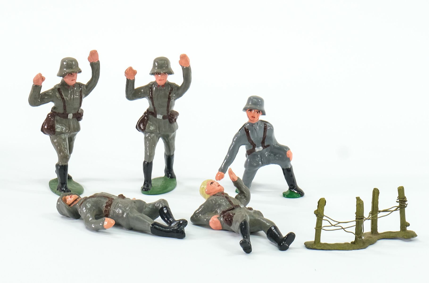 Circa 1980’s Holts and unsigned German Lead or cast metal toy soldiers. VG-EX with minor paint chips. approximately 20 pcs. each about 3″