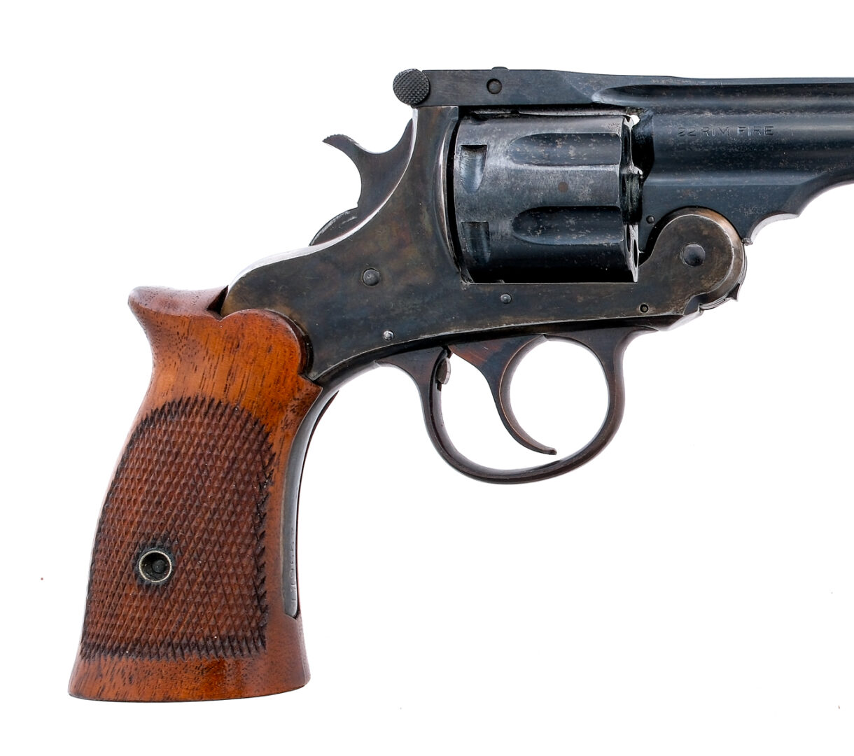 Description Harrington & Richardson 22 Special chambered in .22 long rifle with a seven-shot cylinder and a 6″ barrel. Blued ribbed barrel, frame, fluted cylinder, and controls. Checkered wood grips. Double action trigger and hammer. Knurled top break lever. Fixed iron sights. Must ship to FFL or C&R holder. Condition: Good/Very Good with Scratches, high edge wear, and general handling wear. Spots of metal oxidation, pitting, finish loss, and finish patina. Light scratches and wear on the grips with strong checkering. The front sight is painted white. Clean rifled bore. Barrel Length: 6″ Serial: 499611 Manufacturer: H & R 1871, LLC. (HARRING Caliber: .22 Long Rifle Model: 22 Special Book# 02106