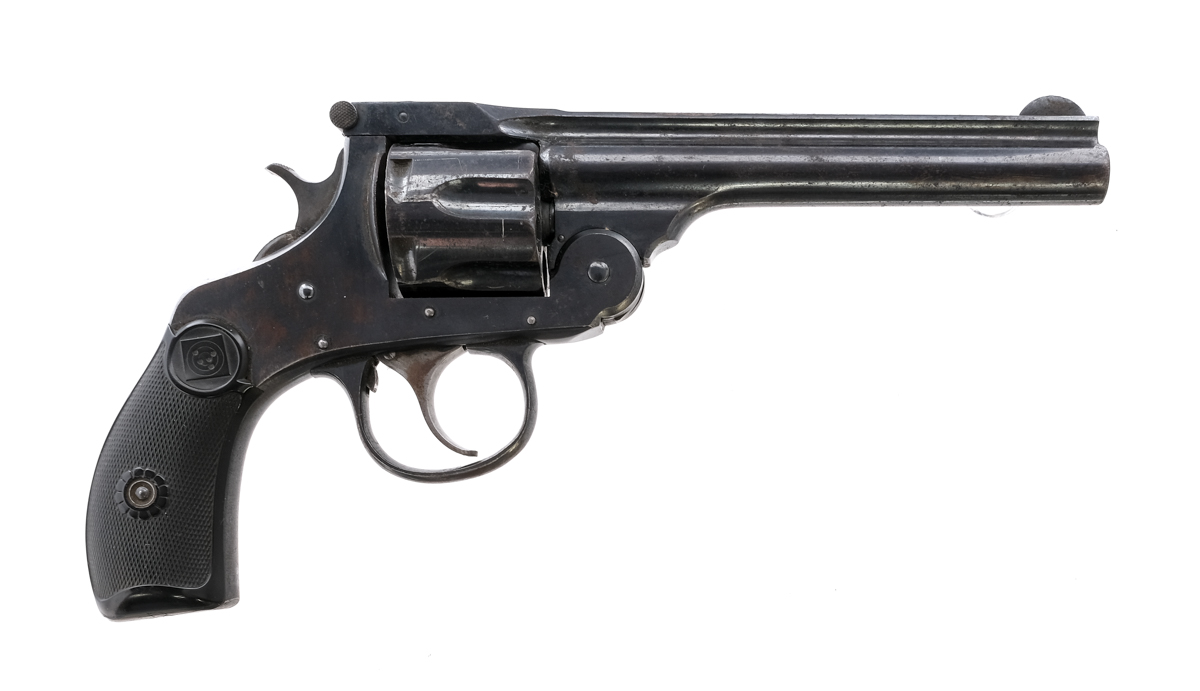 Description Harrington & Richardson Top Break in .32 Smith & Wesson with a six round capacity and a 5″ barrel. Checkered composite grip plates. Blued frame, trigger guard, cylinder and barrel. Case colored trigger and checkered hammer. Top of frame checkered ambidextrous top break action release. Front and rear fixed sights. Must ship to a C&R or FFL holder. Condition: Poor with finish wear/loss and rust. The action does not cycle properly, needs Gunsmith. The rifled bore has a few spots of pitting. Sold AS-IS. Barrel Length: 5″ Serial: 53460 Manufacturer: Harrington & Richardson Caliber: .32 ACP Model: Top Break Book# 134