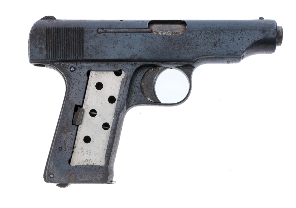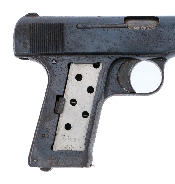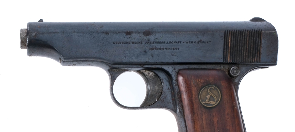 Description This lot is for two C&R eligible handguns. First is a Harrington & Richardson Top Break revolver chambered in .32 Smith & Wesson with a five-shot cylinder and a 3″ barrel. Blued finish with checkered polymer grips. Double action only with internal hammer. Rear notch and fixed front blade iron sights. The second pistol is a German Deutsche Werke Ortgies 1920 chambered in .380 ACP with one magazine and a 3 3/8″ barrel. Blued finish with smooth wood grip, the right grip is missing. Steel frame with grip safety and serrated heel magazine release. Serrated steel slide with fixed iron sights. Must ship to a FFL or C&R holder. Condition: Fair/Good with both showing spots of metal oxidation and finish patina. Scratches, sharp edge wear, and general cosmetic wear. Wear on the operational and internal parts from use. Light wear on the grips. The Ortgies is missing the right grip. Both bore are bright and clean with strong rifling. The H&R’s action is very stiff and takes a lot of force for the trigger to break. Barrel Length: 3″ 3 3/8″ Serial: 190921, 62964 Manufacturer: H&R, Deutsche Werke Caliber: .32 S&W, .380 ACP Model: Top Break, Ortgies 1920 Book# 07721 07395