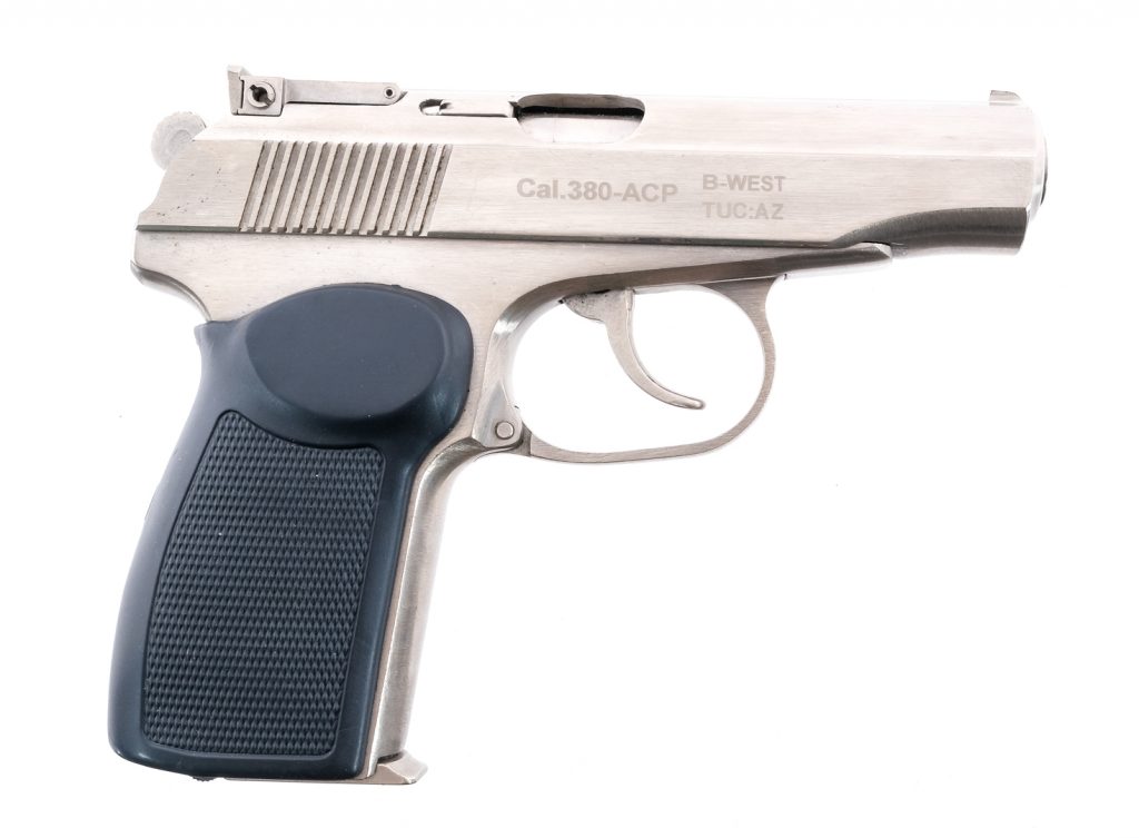 Description Imez IJ70-17AS in .380 ACP with one, eight round removable magazine and a 3.5″ barrel. Made in Russia and import marked by: B-West out of Tucson Arizona. Checkered hard rubber grip plate. Polished stainless steel frame and serrated slide. Untextured trigger and serrated hammer. Left side of frame slide release. Left side of slide safety switch. Rear adjustable and front fixed blade sight. Must ship to a FFL holder. Condition: Very good/Excellent with light scuffs and handling wear. Clean rifled bore. Barrel Length: 3.5″ Serial: BCK0863 Manufacturer: IMEZ Caliber: .380 Model: IJ70 -17AS Book# 8-729
