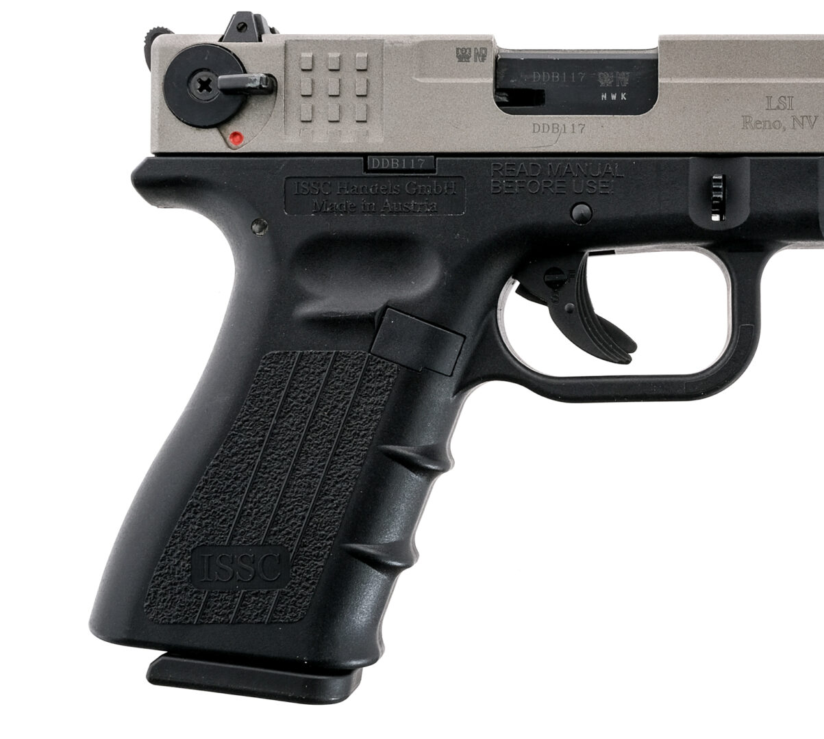 Description ISSC model M22 semi-automatic pistol chambered in .22 Long Rifle with two, 10 round magazines and a 4.12″ barrel. Imported by LSI in Reno, NV. Black polymer frame with a stippled grip and finger grooves. Serrated polymer trigger with trigger blade safety. Under barrel accessory rail. Serrated left side slide stop and magazine release. Ambidextrous rear slide safety/decocker. Front and rear slide checkering. Comes in its matching factory box with trigger lock and manual. Must ship to FFL holder. Condition: Very Good with handling wear and some small scratches on the slide. Rifled bore is bright and clean. Barrel Length: 4.12″ Serial: DDB117 Manufacturer: ISSC HANDELSGESELLSCHAFT Caliber: .22 Long Rifle Model: M22 Book# 01003