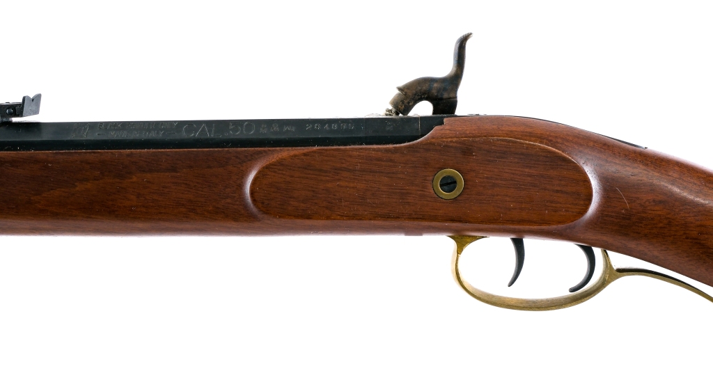 Description Italian Made Hawken Rifle Model 120B in .50 caliber with a single round capacity and a 29″ octagon barrel. Made in Italy by Investarms. Brass butt plate. Smooth Monte Carlo style stock with brass patch box. Brass trigger guard. Blued double set trigger and barrel. Case colored lock plate and hammer. Under barrel removable ramrod. Rear adjustable and front fixed blade sight. Comes in its factory box with matching serial number. Black Powder Cap & Ball Muzzle Loader No FFL required and ships to MOST buyers home. Condition: Good with light scuffs, dings and handling wear. The rifled bore has spots of light rust. Barrel Length: 29″ Serial: 284895 Manufacturer: Investarms Caliber: .50 Model: Hawken Rifle