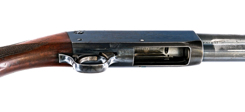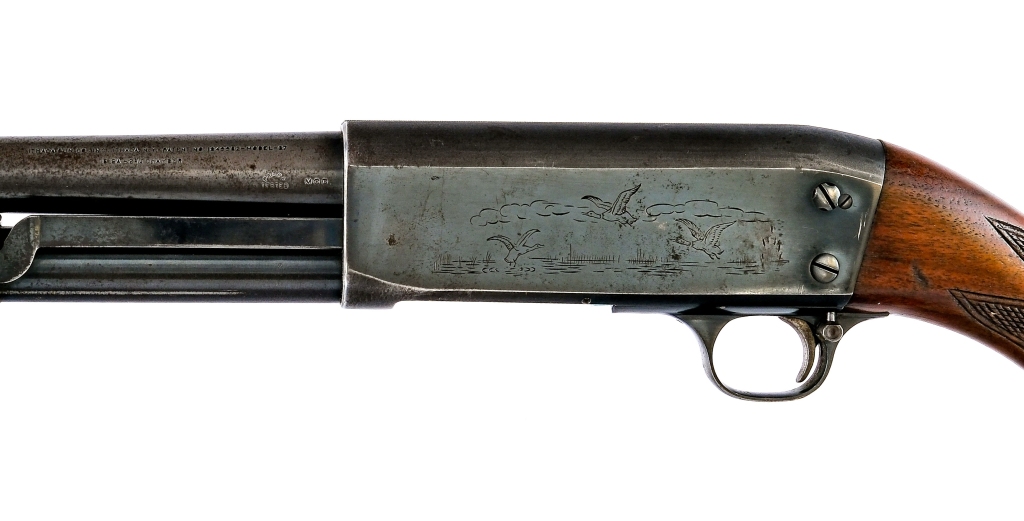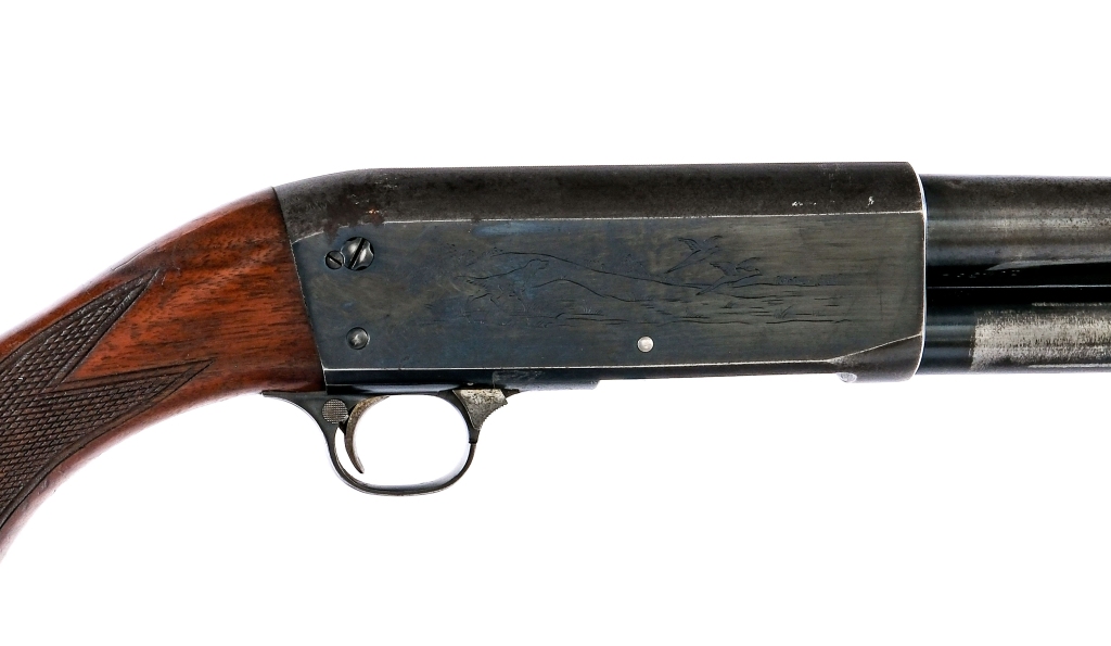 Description Ithaca Model 37 in 16 gauge 2 3/4″ with a four round capacity and a 28″ MOD fixed choke barrel. Made in Ithaca New York in 1946. Serrated composite butt plate. Checkered style wood stock and serrated front forend. Blued trigger guard, receiver and barrel. Rear trigger guard push button safety. Front trigger guard action release. Front fixed brass bead sight. Must ship to a C&R or FFL holder. Condition: Fair with scratches, finish wear/loss and rust. Clean smooth bore. Barrel Length: 28″ Serial: 104362 Manufacturer: Ithaca Gauge: 16 Year: 1946 Model: 37 Book# 08035