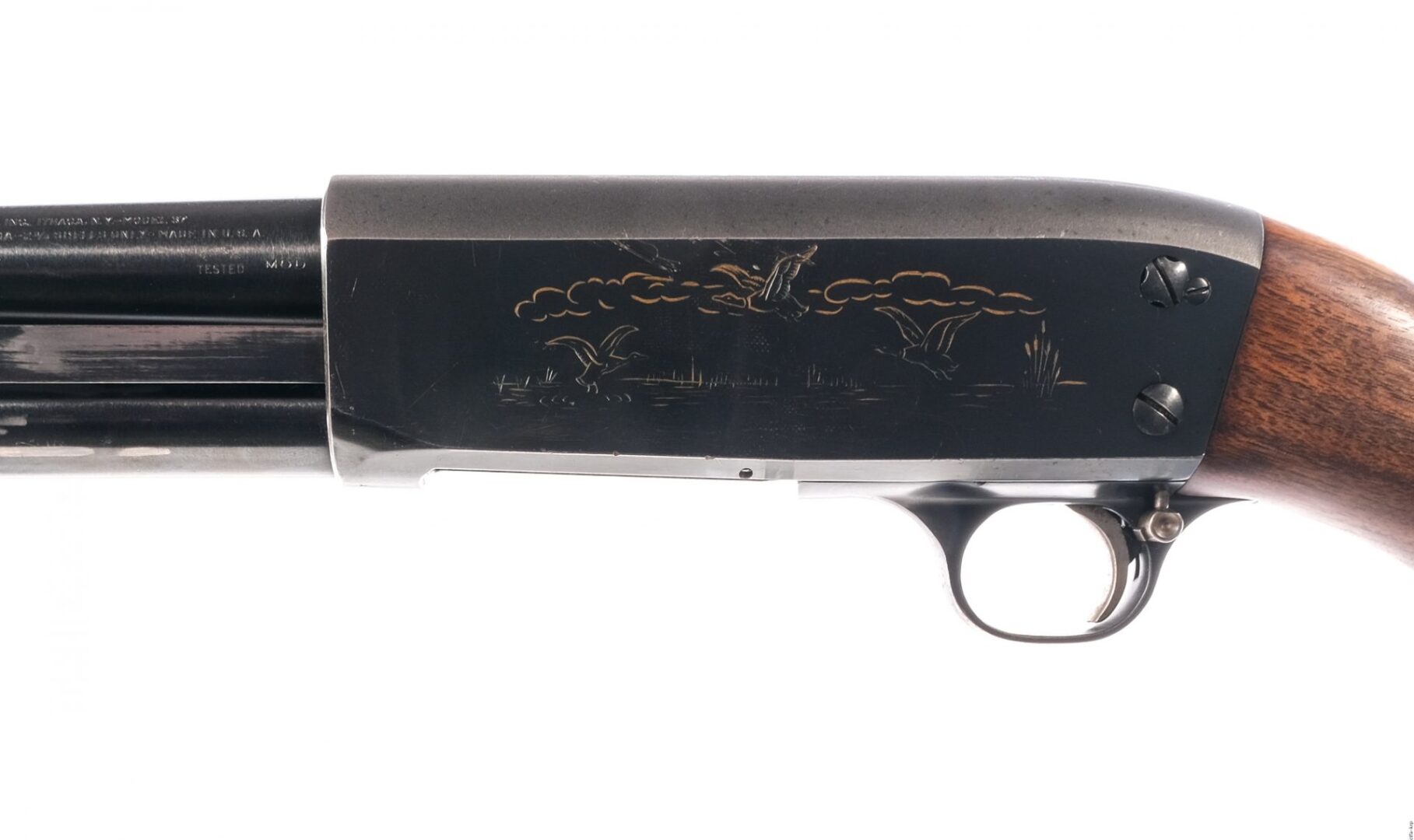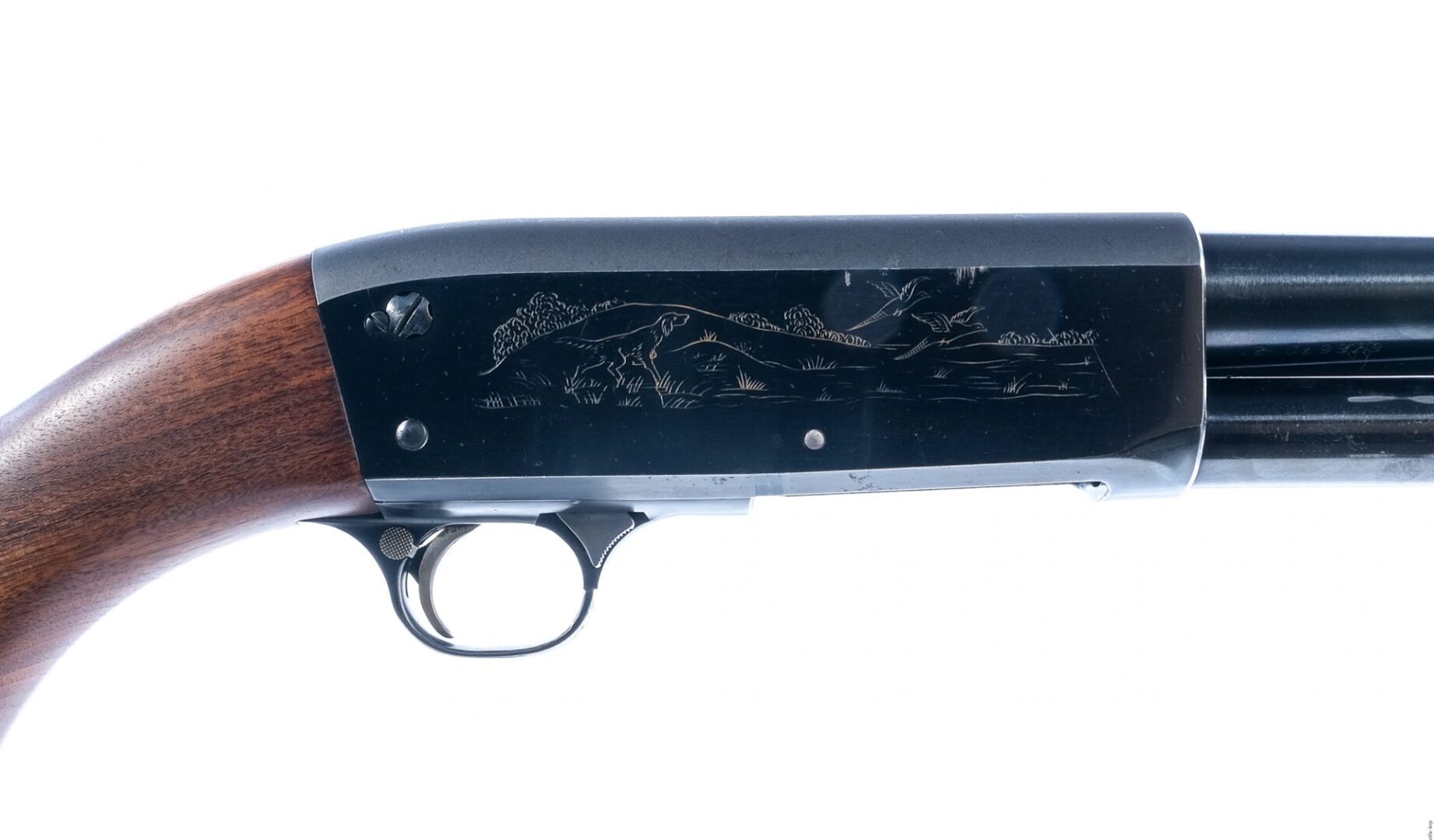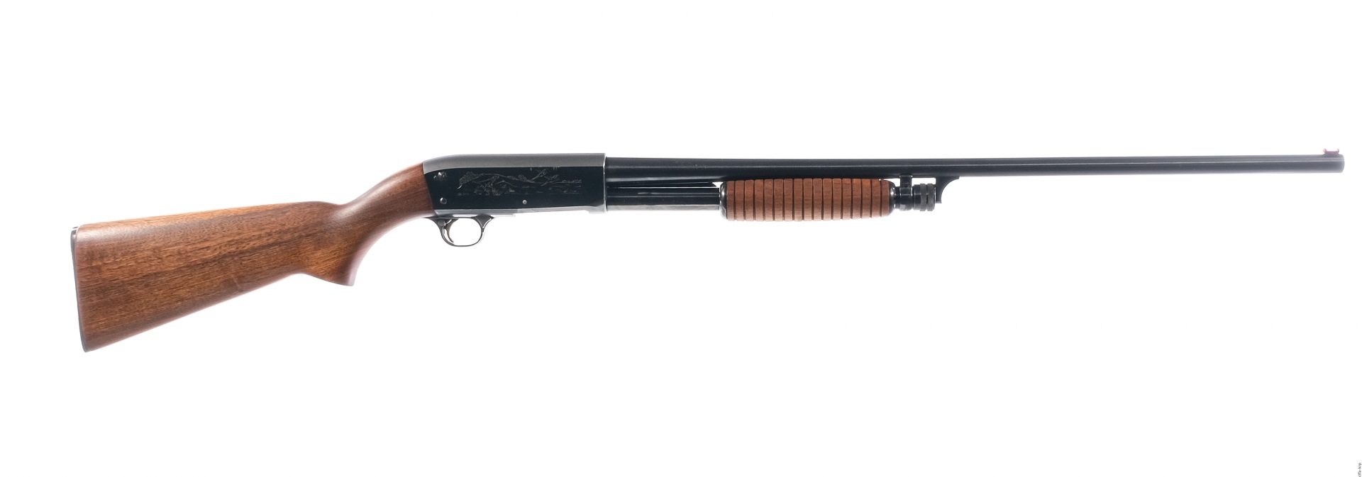Description Ithaca Model 37 Featherlight in 20 gauge 2 3/4″ with a five round capacity and a 26″ MOD fixed choke barrel. Serrated composite butt plate. Smooth wood stock and serrated front foregrip. Blued trigger guard, trigger, receiver and barrel. Rear trigger guard push button safety. Front trigger guard action release. Front fixed fiber optic sight. Comes with a printed Model manual. Must ship to a C&R or FFL holder. Condition: Very Good with light scratches and handling wear. Clean smooth bore. Barrel Length: 26″ Serial: 616670-2 Manufacturer: Ithaca Gauge: 20 Model: 37 Featherlight Book# 574