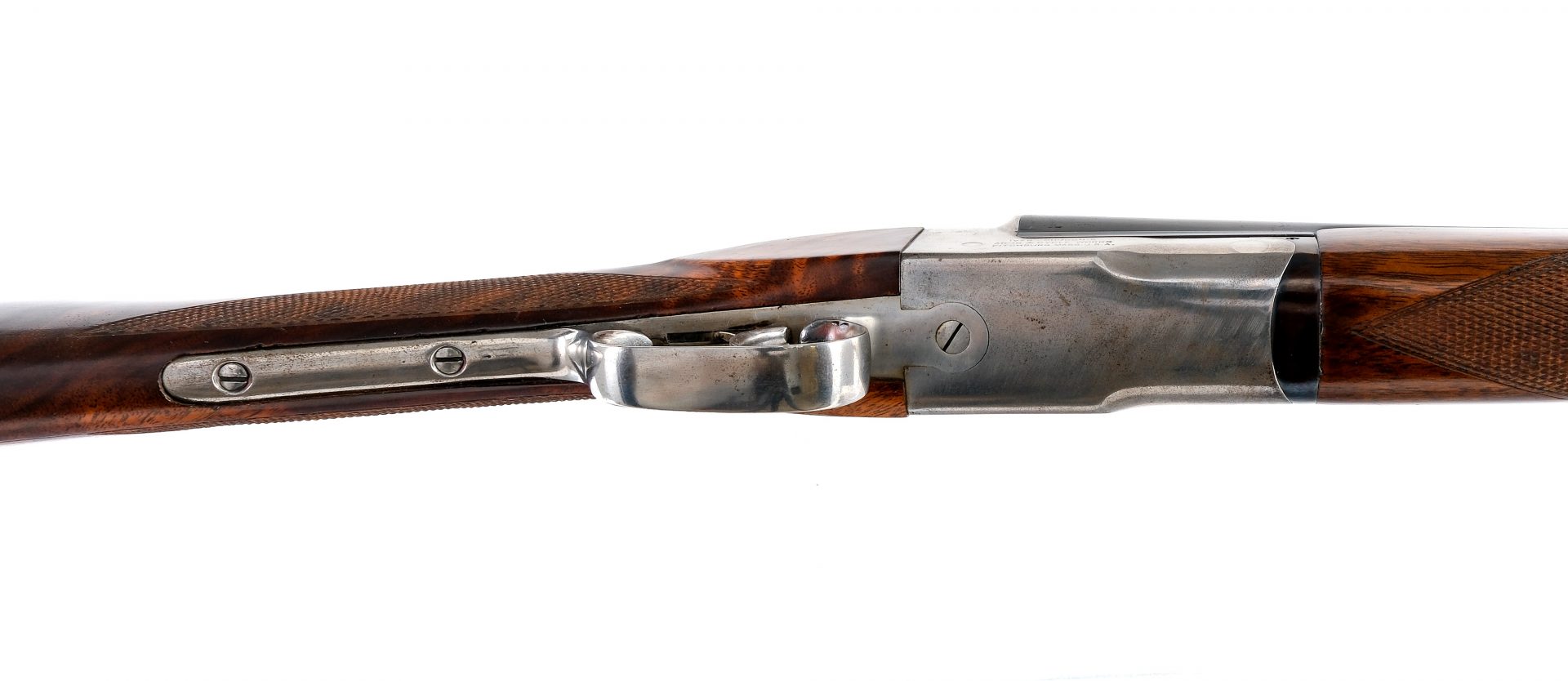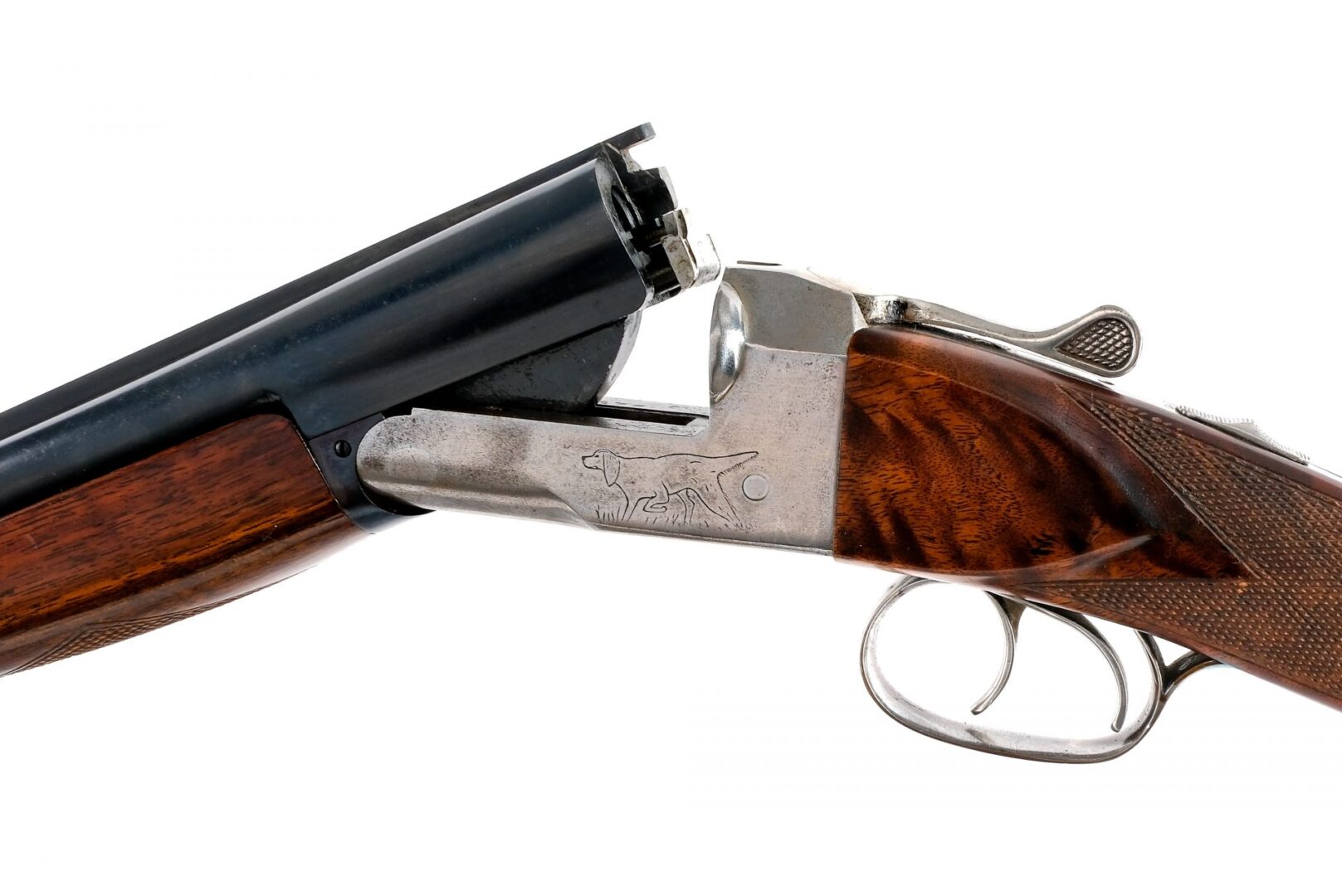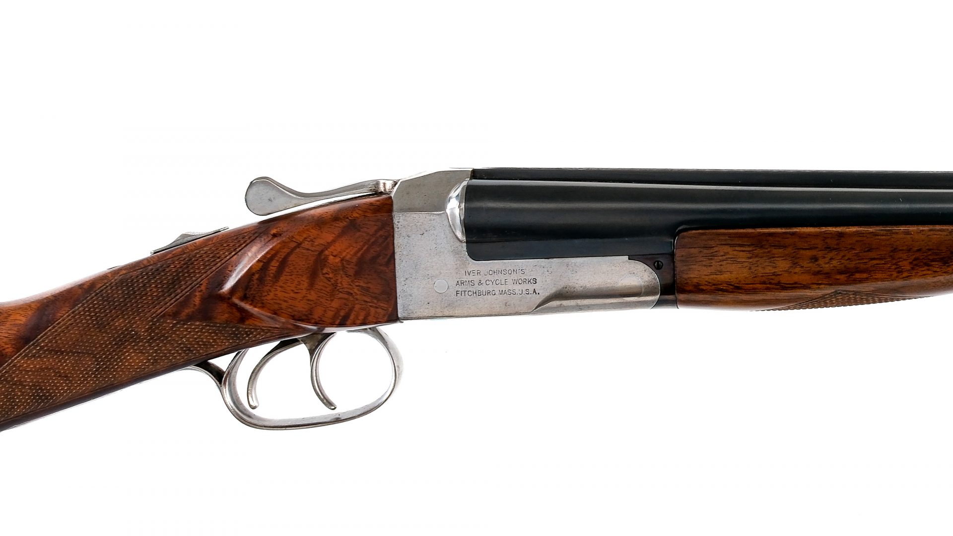 Description Iver Johnson Hercules Grade Hammerless chambered in .410 for 2 3/4″ shells with a 26″ side by side blued double barrels. In the white box lock, lever, tang safety, trigger guard, and double triggers. The left side of the lock is engraved with a etched hunting dog. Checkered walnut forend and straight grip stock with ribbed black butt plate. Brass bead front sight. Must ship to a FFL or C&R holder. Condition: Good/Very Good with light scratches, contact marks, and general handling wear. Aside from the barrels the finish is in the white with a polished look. Small speckling of metal oxidation/pitting. Light scratches and wear on the wood. Bright and clean smooth bore. Barrel Length: 26″ Serial: 21376 Manufacturer: IVER JOHNSON ARMS Gauge: .410 Model: Hercules Grade Book# 05232