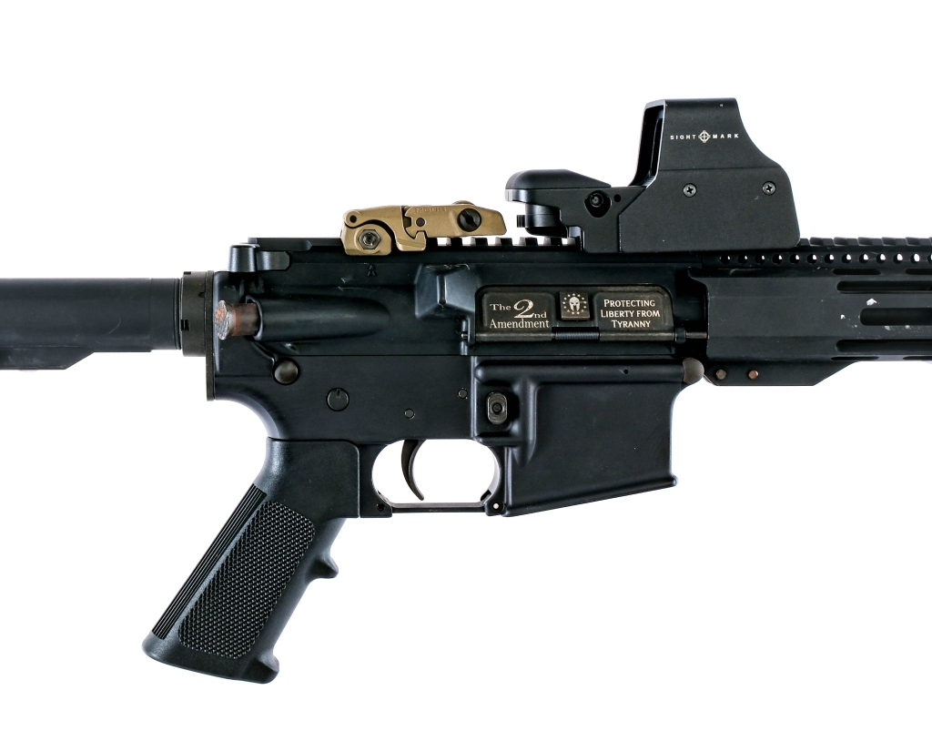 Description JC Arms FMG chambered in 5.56x45mm NATO with a 16″ 1/7 twist barrel. A2 style birdcage flash hider. 15″ aluminum MLOK handguard with picatinny top rail. Flat top upper receiver with mounted Sight Mark Red/Green dot sight. FDE Magpul MBUIS adjustable sights. 2nd Amendment themed dust cover. Forged lower receiver with A2 style polymer pistol grip. Adjustable MAGPUL carbine stock. NO MAGAZINE INCLUDED. Must ship to a FFL holder. Check local laws regarding “Assault Weapons”. Condition: Good with scratches, scuffs, and general cosmetic handling wear. Internal wear from normal operation. Spots and speckling of metal oxidation on the forward assist, controls, screws, and other small parts. Bright and clean rifled bore. Barrel Length: 16″ Serial: 0312 Manufacturer: JC Arms Caliber: 5.56x45mm NATO Model: FMG Book# 07645