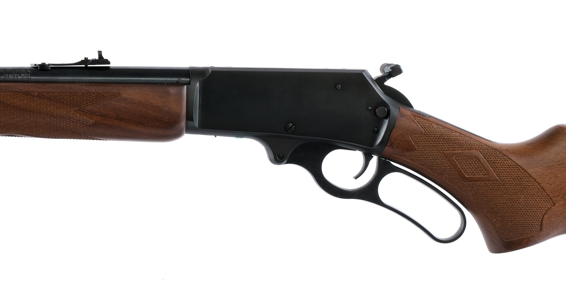 Description JM stamped Marlin 336A chambered in .30-30 Winchester with a six round tubular magazine and a 20″ barrel. Blued barrel, magazine tube, frame, loading gate, hammer, lever, and trigger. The receiver is drilled and tapped for mounting optics/rails. Adjustable rear and hooded front blade iron sights. Knurled hammer extension. Cross bolt safety. Checkered wood forend and pistol grip stock with checkered Marlin butt plate. Must ship to a FFL holder. Condition: Very Good with light scratches and handling wear. Light wear on the moving/internal parts from operation. Light wear on the wood. Bright and clean bore with strong rifling. Barrel Length: 20″ Serial: 97015793 Manufacturer: MARLIN FIREARMS COMPANY Caliber: .30-30 Winchester Model: 336A Book# 06031