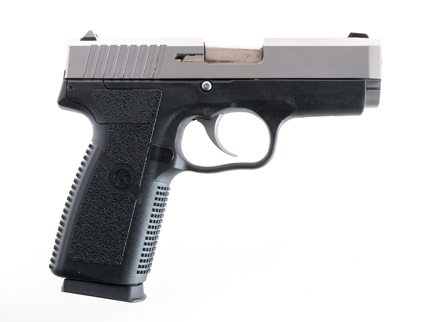 Description Kahr CW45 in .45 caliber with one, six round removable magazine and a 3.5″ barrel. Textured black composite grip on frame. Matte silver finished trigger and serrated slide. Left side of frame serrated slide release. Lower left side of grip located serrated magazine release button. Front and rear fixed white sights. Comes in its factory box with matching serial number. Must ship to a FFL holder. Condition: Very Good with light scuffs and handling wear. Clean rifled bore. Barrel Length: 3.5″ Serial: SE3495 Manufacturer: Kahr Caliber: .45 ACP Model: CW 45 Book# 9-320