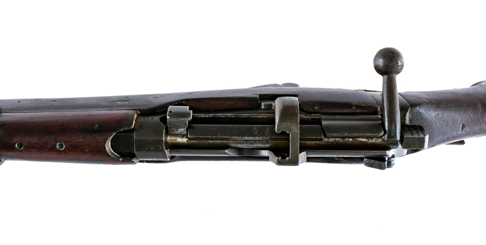 Description Australian Lithgow SMLE III Enfield chambered in .303 British with a ten round magazine and a 25.2″ barrel. Parkerized barrel, end cap, receiver, bolt, trigger, and trigger guard. Front bayonet lug. Adjustable rear ladder sight and protected front sight. Receiver mounted safety lever and trigger guard paddle magazine release. Smooth wood top forend and wood stock with brass butt plate. Front and rear sling swivels. The right side of the grip ring is stamped “M A LITHGOW S.M.L.E. III 1944”. Must ship to a FFL or C&R holder. Condition: Fair/Good with scratches and general cosmetic handling wear. Varying spots of metal oxidation and finish patina. Small spots of pitting. Heavy metal oxidation on the butt plate. The wood appears to have been sanded and refinished at some point. Scratches, scuffs, and dings. A few small thin cracks in the stock and forend. Good bore, is bright and shows strong visible rifling. There is some light frosting of metal oxidation in the bore. Barrel Length: 25.2″ Serial: 2536 Manufacturer: LITHGOW ARMS Caliber: .303 British Model: SMLE III Enfield Book# 06566