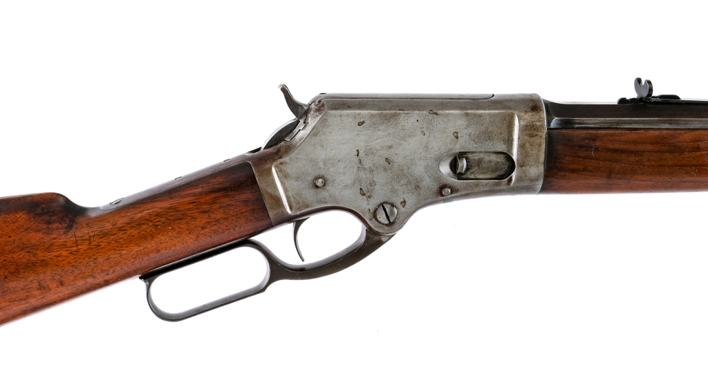 Description Marlin Model 1881 in .45-70 Government with a nine round capacity and as 28″ octagon barrel. Four digit serial number, made in New Haven Connecticut in 1883. Finish worn butt plate. Finish worn hand lever, trigger, hammer, receiver, magazine tube and barrel. Right side of receiver loading gate. Rear adjustable and front fixed blade sight. Antique, No FFL required and ships to MOST buyers homes. Condition: Antique, Very Good with scratches, refinished wood, wood dings, finish wear/loss and light spots of rust. Clean rifled bore. Barrel Length: 28″ Serial: 5576 Manufacturer: Marlin Year: 1883 Caliber: .45-70 Govt Model: 1881