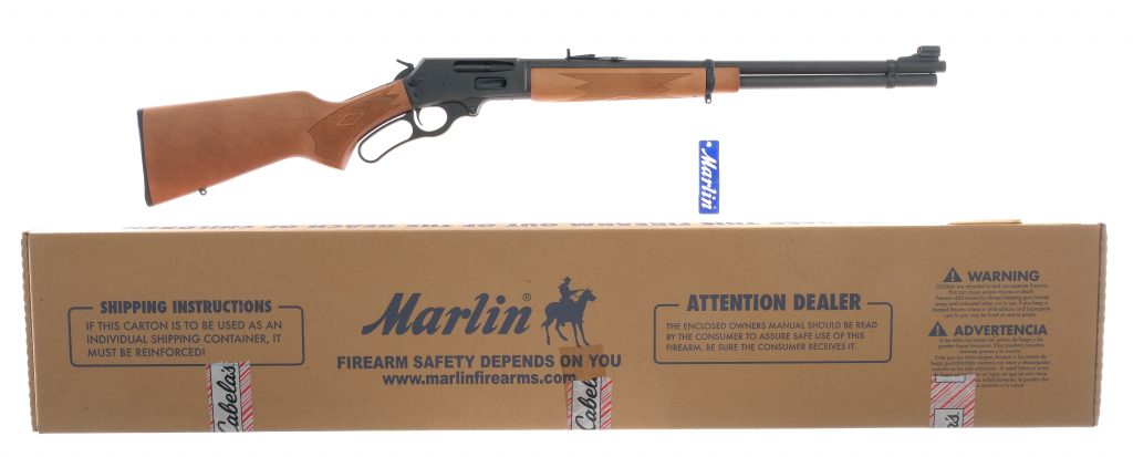 Description Marlin Model 336W in .30-30 Winchester with a six round capacity and a 20″ barrel. Checkered composite butt plate. Checkered wood stock and front forend. Matte blued hand lever, trigger, hammer, receiver, magazine tube and barrel. Right side of receiver loading gate. Rear receiver push button safety. Rear adjustable and front fixed blade hooded sight. Metal eyelets for mounting a shoulder sling. Comes in its factory box with matching serial number, instruction manual, offset aftermarket hammer spur and two gun locks with keys. Must ship to a FFL holder. Condition: New with box and tags. Clean rifled bore. Barrel Length: 20″ Serial: MR18675I Manufacturer: Marlin Caliber: .30-30 Win Model: 336W Book# 01786