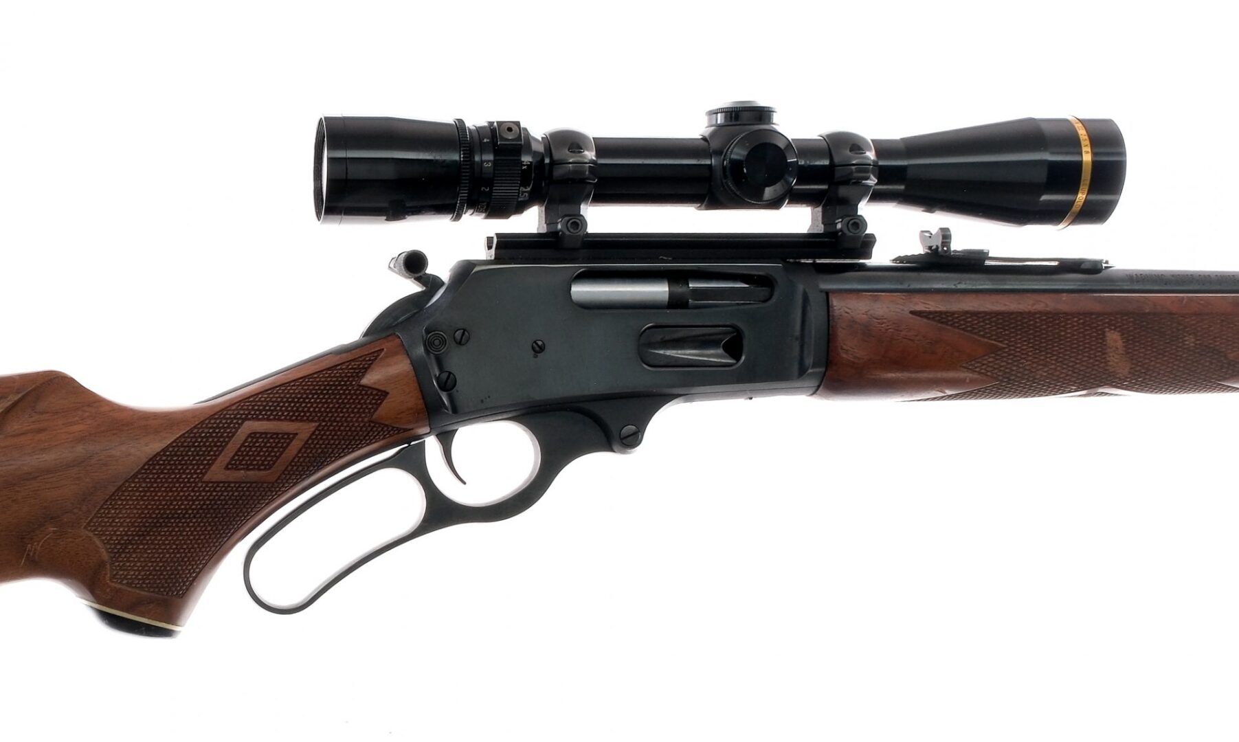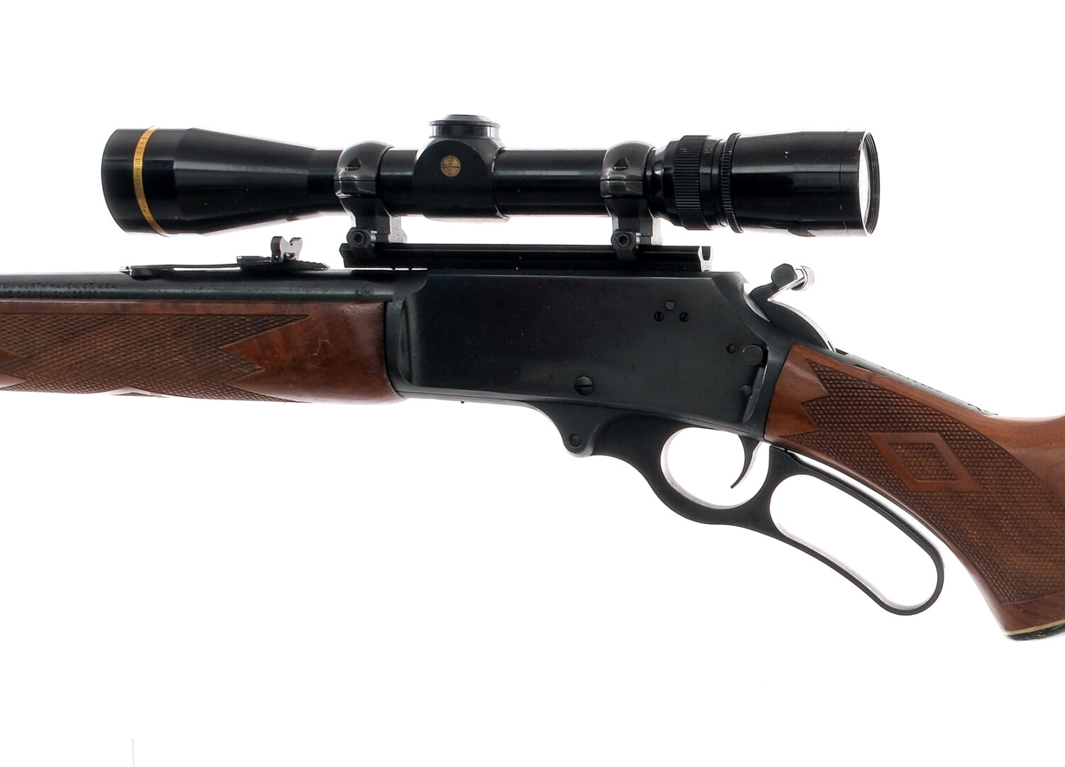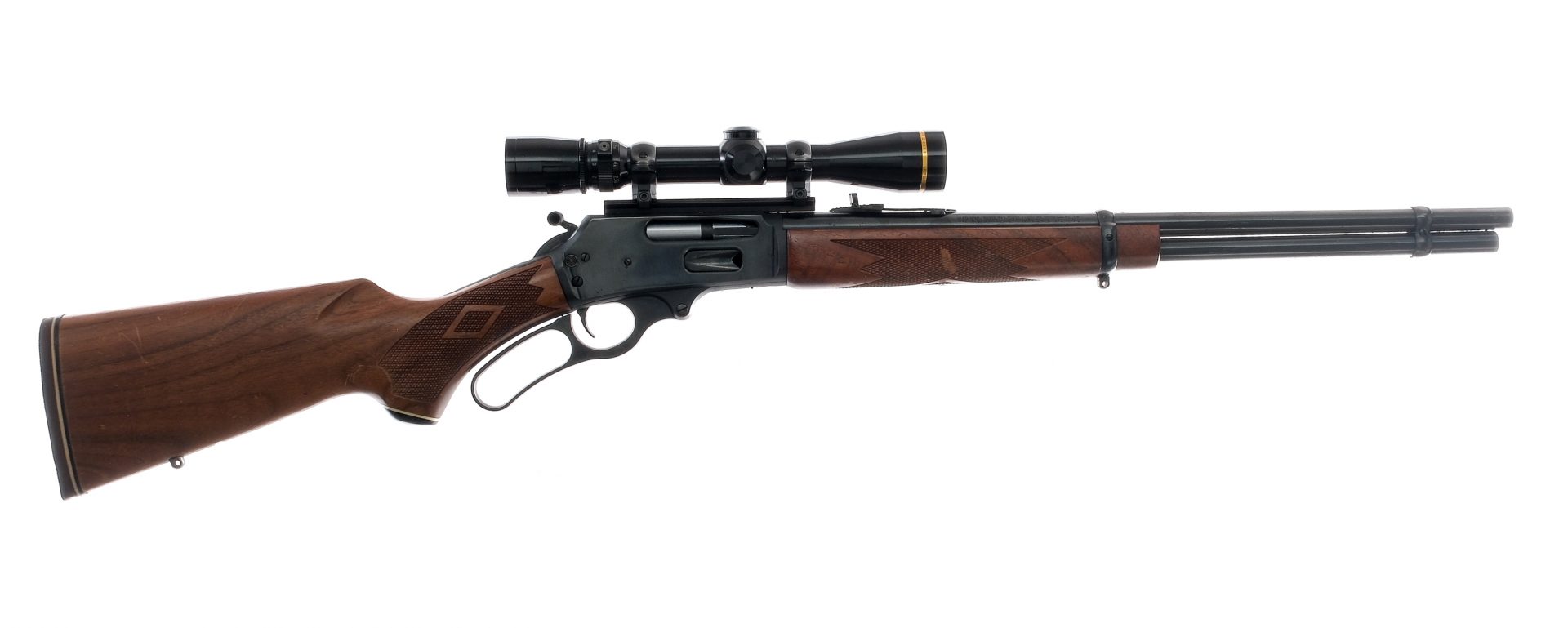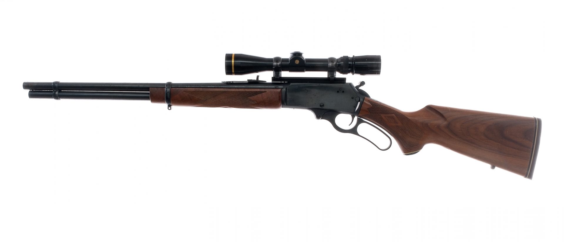 Description Marlin model 336 CS lever-action rifle chambered in .30-30 Win with a 20 1/4″ barrel and a 6+1 tube magazine capacity. Blued receiver, JM stamped barrel, trigger, and serrated hammer with right side thumb extension. Checkered wood stock and forend. Checkered rubber butt pad. Eyelets for mounting sling swivels. Left side receiver push-button safety. Front sight has been removed and the rifle is mounted with a Leupold Vari-X III 2.5×8 Duplex reticle scope. Must ship to FFL holder. Condition: Good/Very Good with scratches and dings along the stock, and light speckling of rust on the receiver and barrel. Surface rust at muzzle. Scope glass is clean and clear. Rifled bore is bright and clean. Barrel Length: 20.25″ Serial: 07048899 Manufacturer: MARLIN FIREARMS COMPANY Year: 1993 Caliber: .30-30 Winchester Model: 336 C S Book# 02584