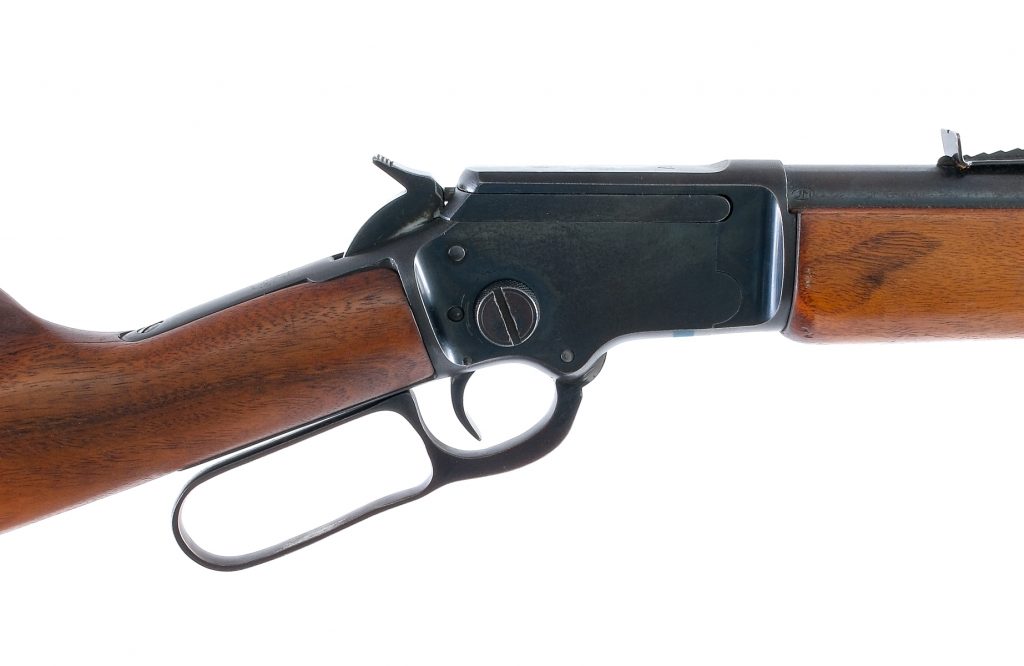 Description Marlin Model 39-A Take-Down in .22 Short, Long or Long Rifle with a varied capacity and a 20″ barrel. Checkered composite butt plate. Blued hand lever, trigger, serrated hammer, receiver, magazine tube and barrel. Right side of receiver checkered take-down screw. Under barrel checkered magazine tube knob. Rear adjustable and front fixed blade sight. Must ship to a C&R or FFL holder. Condition: Good with scratches, finish wear/loss and spots of rust. Clean rifled bore. Barrel Length: 20″ Serial: M12904 Manufacturer: Marlin Year: 1955 Caliber: .22 S L LR Model: 39A Take-Down Book# 02434
