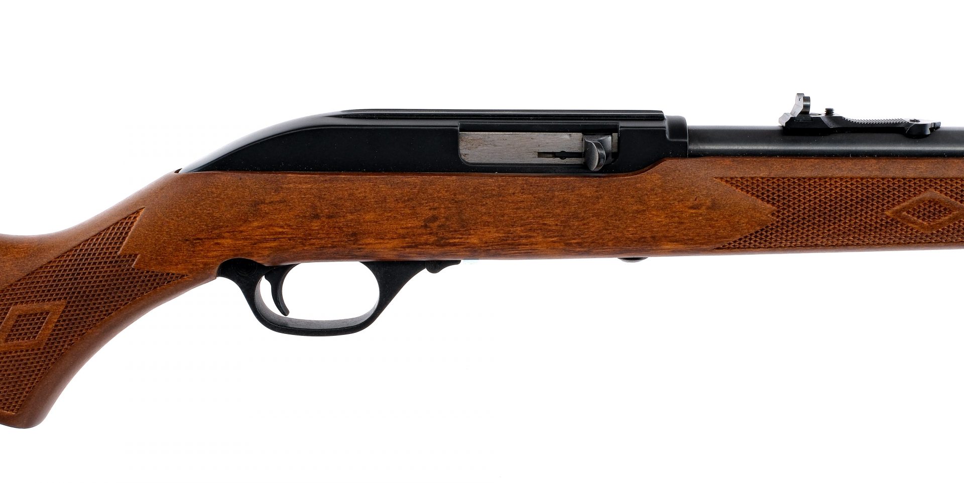 Description Marlin Model 60 in .22 Long Rifle with a fifteen round capacity and a 22″ barrel. Checkered composite butt plate. Checkered wood stock and front forend. Black composite trigger guard and trigger. Blued receiver, barrel and magazine tube. Rear trigger guard push button safety. Front trigger guard action release. Under barrel serrated magazine tube knob. Rear adjustable and front fixed blade sight. Comes in its factory box with matching serial number. Must ship to a FFL holder. Condition: Like New with light handling wear. Clean rifled bore. Barrel Length: 22″ Serial: 5301717 Manufacturer: Marlin Caliber: .22 LR Model: 60 Book# 04607