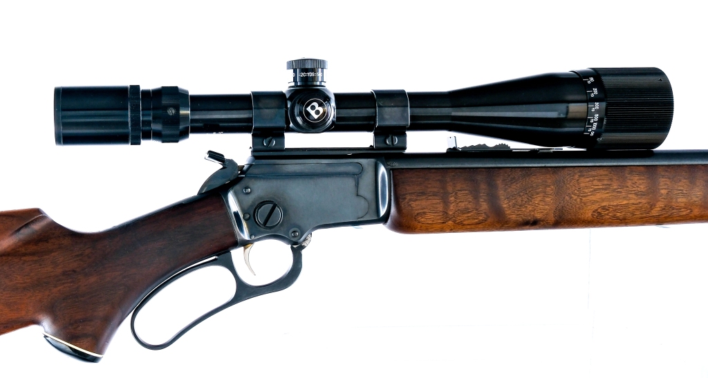 Description Marline 39-A chambered in .22 short, long, and long rifle with a varied capacity tube magazine and a 24″ barrel. Made in New Haven Connecticut in 1960. Checkered composite butt plate. Smooth wood stock and front forend. Blued hand lever, receiver, magazine tube and barrel. Receiver mounted take down screw. Adjustable rear sight and fixed front hooded blade. Top of receiver is mounted with a Bushnell Sportview Quad Power scope 5-20×40 with clear glass and a duplex reticle. Comes with a Longhorn leather shoulder sling. Must ship to a FFL or C&R holder. Condition: Excellent with light scuffs and handling wear. Clean rifled bore. Barrel Length: 24″ Serial: T20963 Manufacturer: Marlin Year: 1960 Caliber: .22 S L LR Model: Golden 39-A Book# 08210
