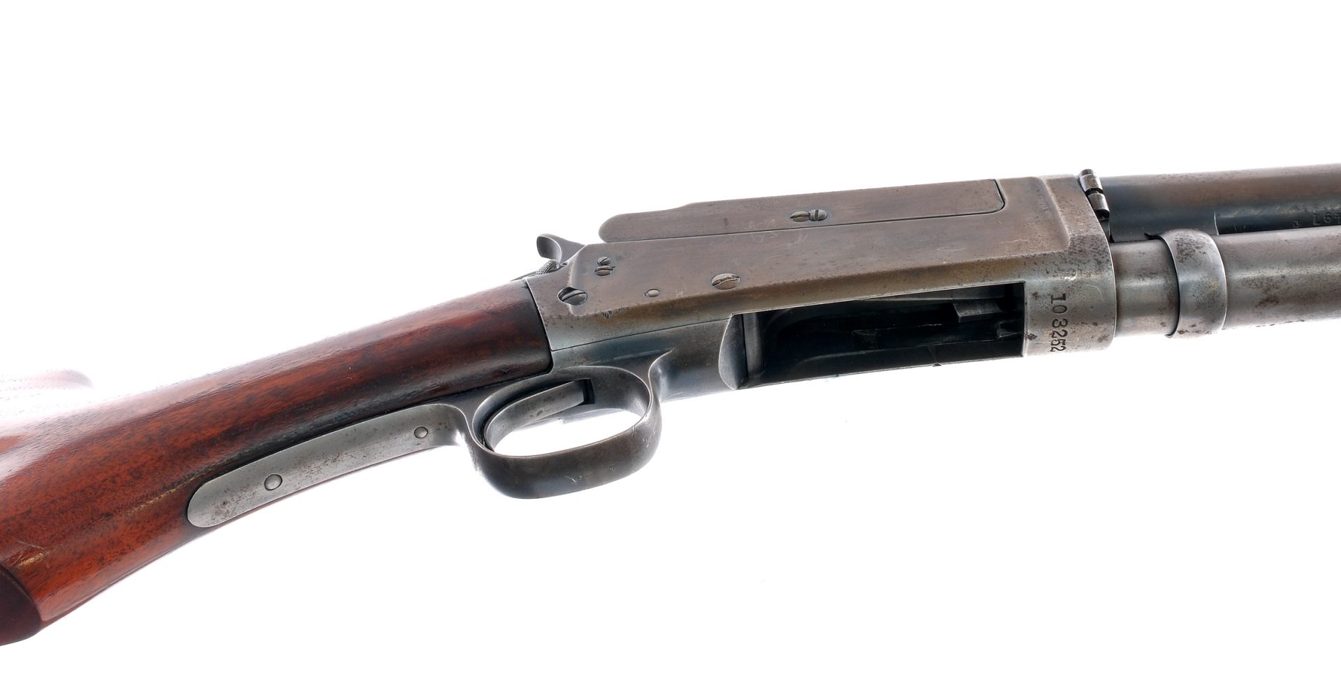 Description Marline Model 24 chambered in 12 gauge with a tube magazine and a 28″ barrel. Patinated blued barrel, magazine tube, receiver, bolt, hammer, trigger, and trigger guard. Ribbed wood forend and smooth wood stock. Silver bead front sight. Must ship to a FFL or C&R holder. Condition: Good with heavy metal oxidation, finish loss, and finish patina on most metal parts. Scratches, scuffs, and dings in the wood. Deep scratches on the right side of the forend. Clean smooth bore. Barrel Length: 28″ Serial: 103252 Manufacturer: MARLIN FIREARMS COMPANY Gauge: 12 Ga. Model: 24 Book# 01756