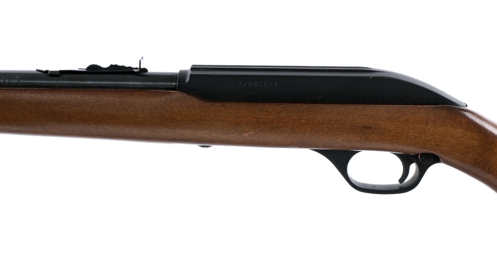 Description Marlin Model 60 chambered in .22 long rifle with a tubular magazine and a 22″ barrel. Blued barrel, magazine tube, and charging handle. Adjustable rear sight and fixed front blade. Black finished alloy frame with groove for mounting optics. Polymer trigger guard with cross bolt safety and bolt release. Smooth wood pistol grip stock with black butt plate. Must ship to a FFL holder. Condition: Very Good with light scratches and handling wear. Light operational wear. Some light scratches on the stock. Bright and clean bore with strong rifling. Barrel Length: 22 Serial: 12542121 Manufacturer: MARLIN FIREARMS COMPANY Caliber: .22 LR Model: 60 Book# 06028