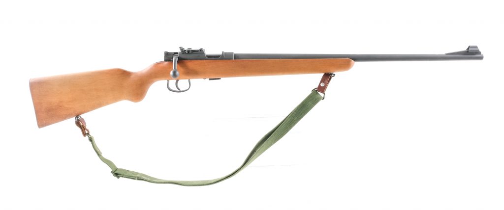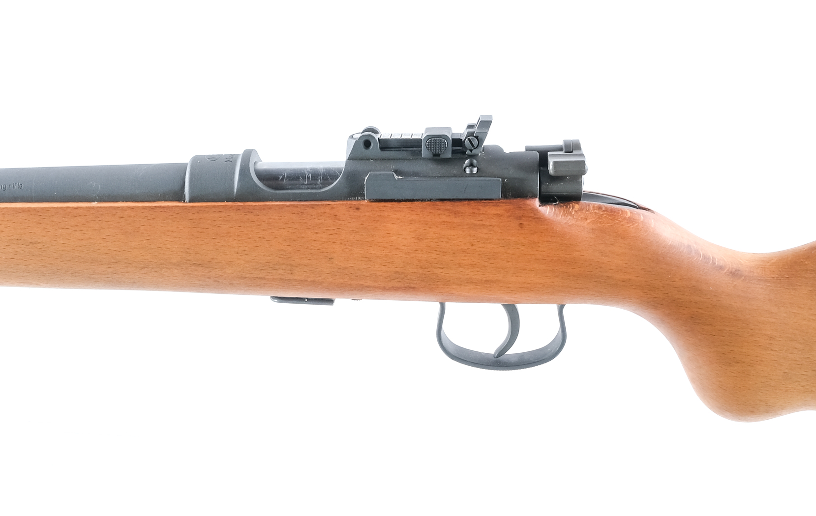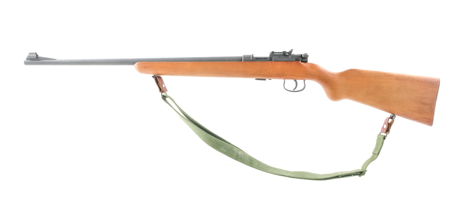 Description MAS Model 45 in .22 Long Rifle with one, five round removable magazine and a 24″ barrel. Import marked on underside of barrel: DAVIDSONS GREENSBORO NC FRANCE. Meta butt plate. Smooth wood stock and front forend. Parkerized trigger guard, untextured trigger, receiver, bolt and barrel. Magwell located magazine release. Rear bolt safety switch. Rear adjustable and front hooded fixed blade. Mounted with a cloth shoulder sling for a SKS marked 7.62 1980. Must ship to a C&R or FFL holder. Condition: Very Good with light scuffs and handling wear. Clean rifled bore. Barrel Length: 24″ Serial: F30533 Manufacturer: MAS Caliber: .22 LR Model: 45 Book# 9–517