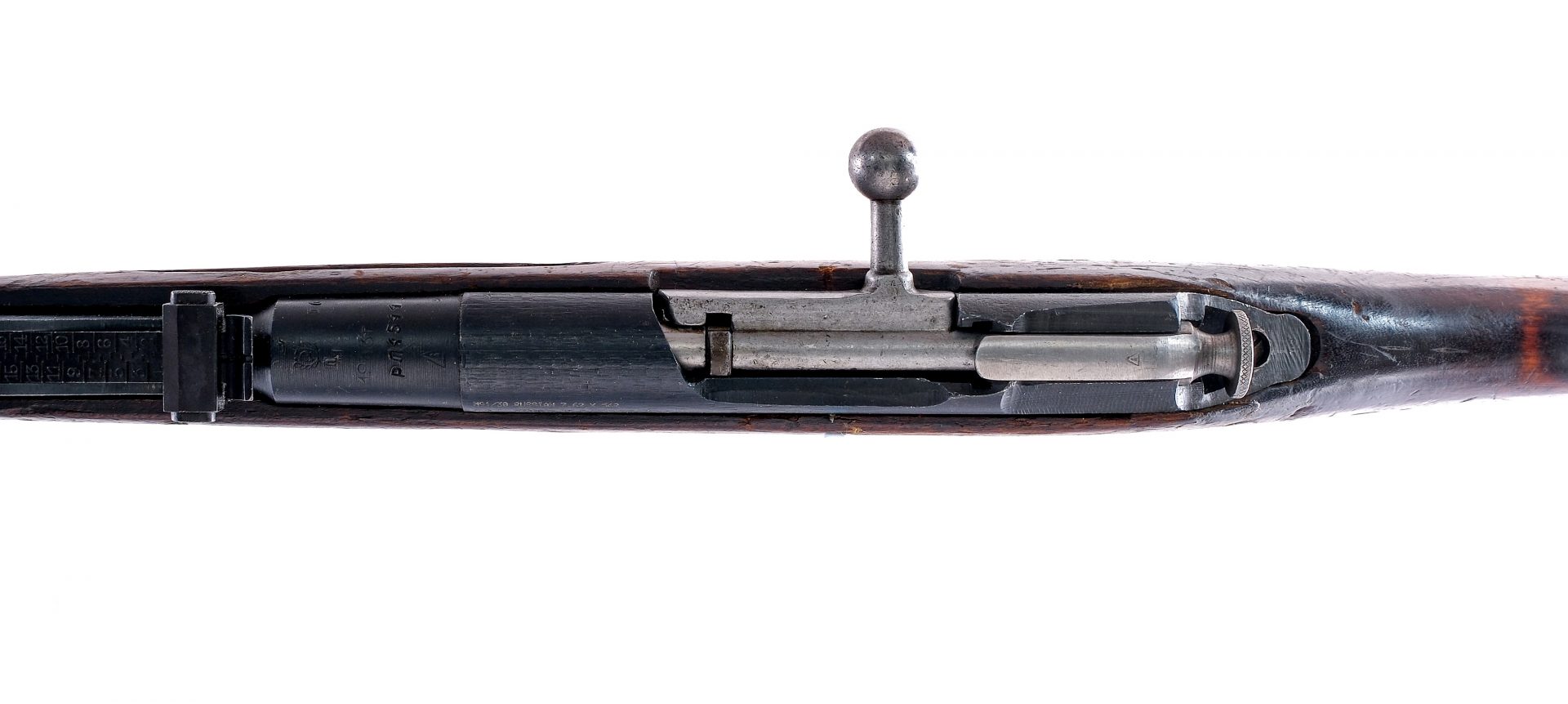 Description Russian Mosin Nagant Model M91/30 in 7.62x54R with a five round capacity and a 29″ barrel. Izhevsk Arsenal marked. Import marked on the side of receiver by C.A.I. GEORGIA VT. Metal butt plate. Smooth wood stock and front forend. Blued trigger guard, trigger, receiver and barrel. Unfinished steel bolt. Rear flip up adjustable and front fixed hooded post sight. Must ship to a C&R or FFL holder. Condition: Fair with scratches, wood damage, cut down stock and handling wear. Clean rifled bore. Sold AS-IS. Barrel Length: 29″ Serial: 9130051289 Manufacturer: Izhevsk Arsenal Russia Year: 1943 Caliber: 7.62x54R Model: M91/30 Mosin Nagant Book# 04088