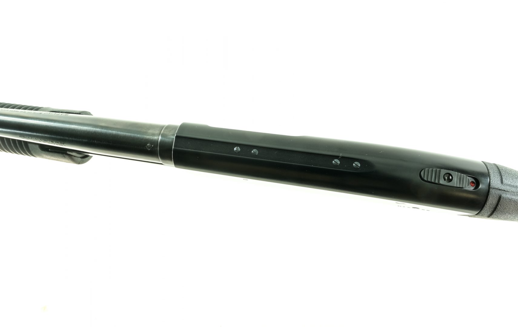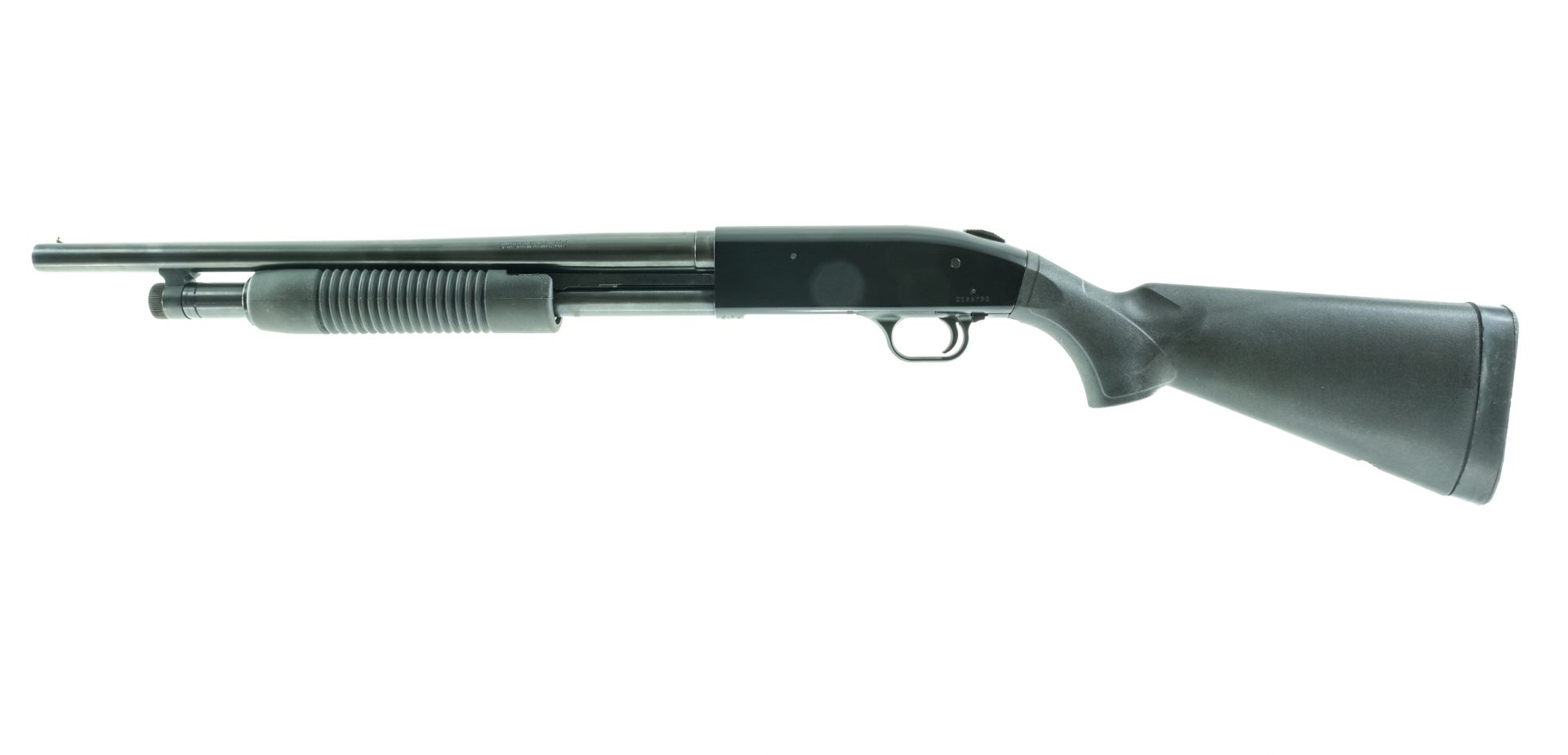 Description Mossberg 500 in 12 gauge 2 3/4″-3″ with a 5 round internal magazine tube capacity and a 18.5″ fixed cylinder choke bore barrel. Serrated rubber butt pad. Black composite stock and serrated foregrip. Composite trigger guard. Black finished receiver. Blued smooth trigger, barrel and magazine tube. Top rear receiver push button safety. Left rear receiver action release. Top of receiver is drilled and tapped for mounting optics. Front fixed brass bead sight. Tapped holes for mounting a shoulder sling. Must ship to FFL holder.