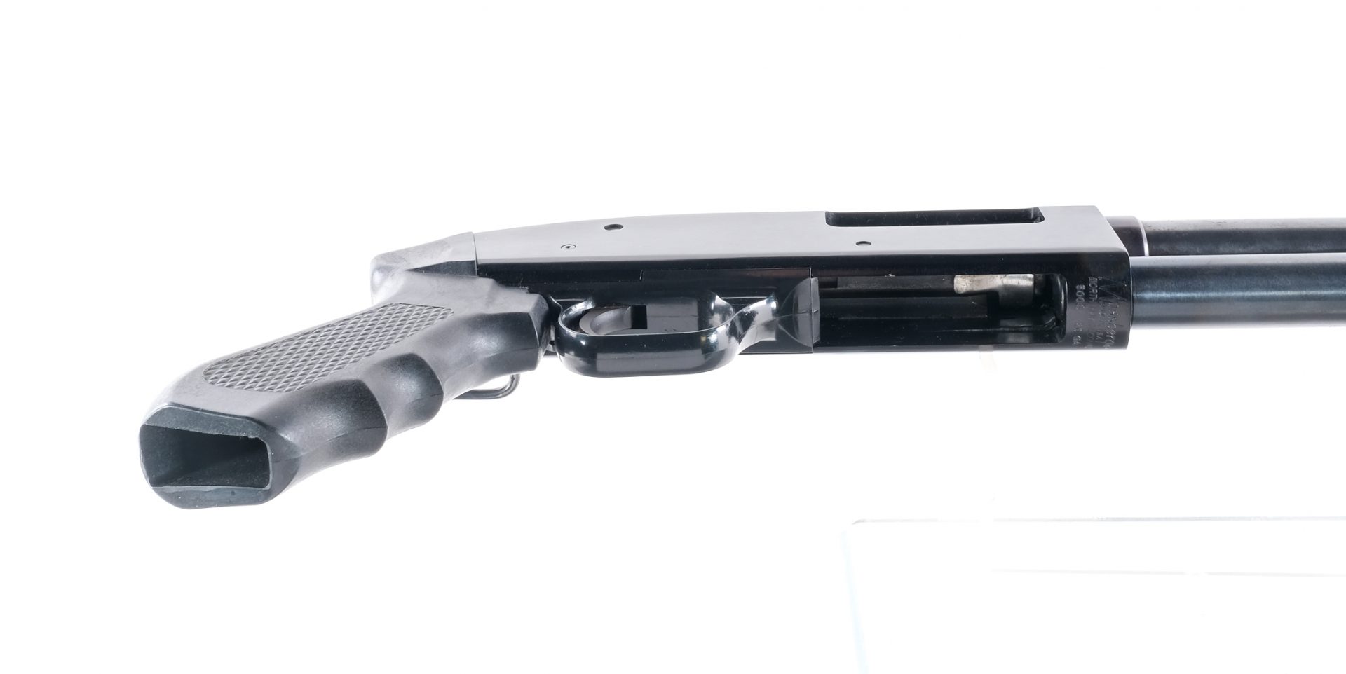 Description Mossberg 500C in 20 gauge 2 3/4″-3″ with a five round capacity and a 18.5″ CYL fixed choke barrel. Checkered composite pistol grip and serrated front wood foregrip. Black finished composite trigger guard. Black finished metal receiver. Blued untextured trigger, barrel and magazine tube. Rear left side of receiver action release. Rear receiver serrated slide button safety. Front fixed brass bead sight. Metal swivel loops for mounting a shoulder sling. Must ship to a FFL holder. Condition: Good/Very Good with light scratches and touches of rust. The smooth bore has a spot of rust at the muzzle otherwise very clean. Barrel Length: 18.5″ Serial: J559667 Manufacturer: Mossberg Gauge: 20 Model: 500C Book# 9-822