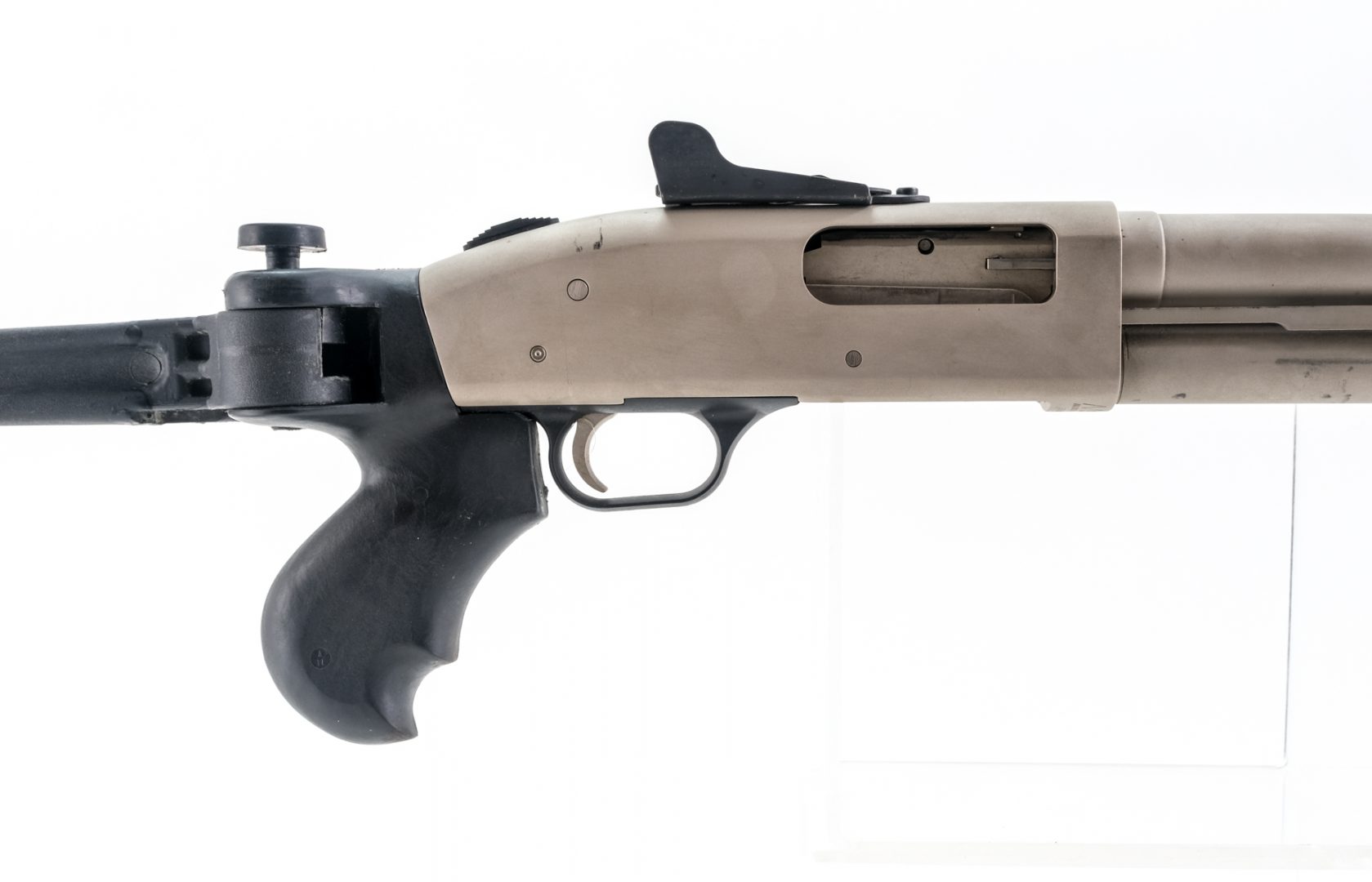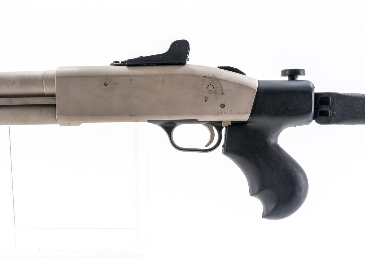 Description Mossberg Model 590 Mariner in 12 gauge 2 3/4″ with a eight round internal capacity and a 20″ CYL-Bore barrel. Composite folding butt stock with pistol grip and serrated front foregrip. Adjustable Mossberg rear peep hole sight and front fixed brass bead. Composite trigger guard and metal smooth trigger. Left side of trigger guard located action release. Rear of receiver located serrated safety switch. The receiver, barrel and magazine tube have a Marinecote finish coating to protect against the elements. This pump action shotgun must ship to a FFL holder.