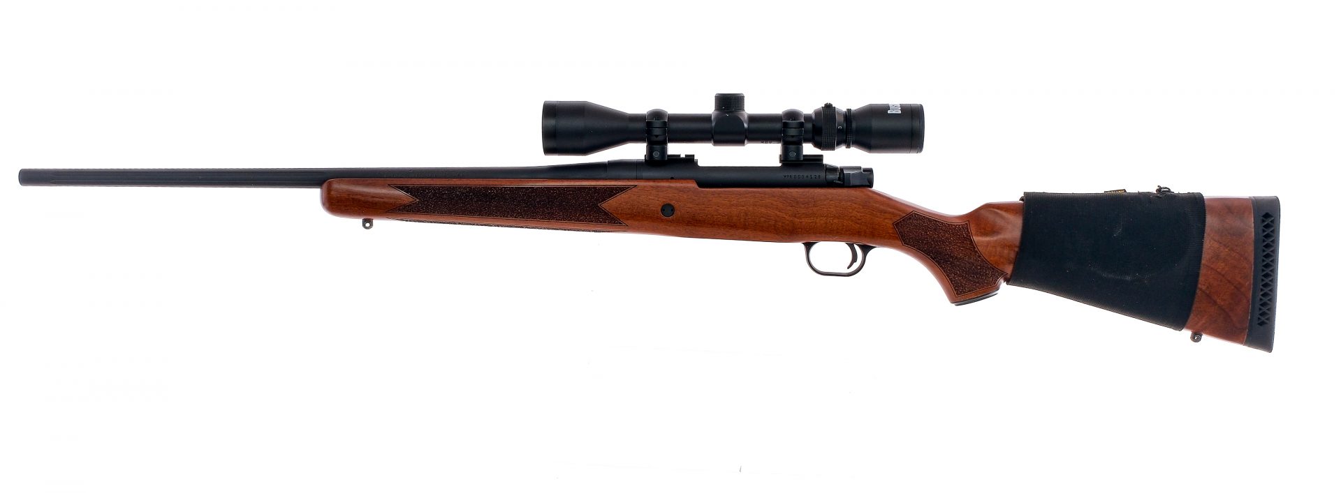 Description Mossberg Patriot in .308 Winchester, missing its removable magazine with a 22″ fluted barrel. Rubber butt pad. Textured Monte Carlo style wood stock and front forend. Black composite trigger guard. Blued trigger, bolt handle, receiver and barrel. Rear right side of receiver safety. Rear left side of receiver bolt release. Metal eyelets for mounting a shoulder sling. No fixed sights. Comes mounted with a Bushnell scope 3x-9x, 40 with clear glass and a duplex reticle. Allen nylon extra round older on the butt stock. Must ship to a FFL holder. Condition: Very Good with light scratches and handling wear. Clean rifled bore. Barrel Length: 22″ Serial: MPR0004128 Manufacturer: Mossberg Caliber: .308 Win Model: Patriot Book# 03585