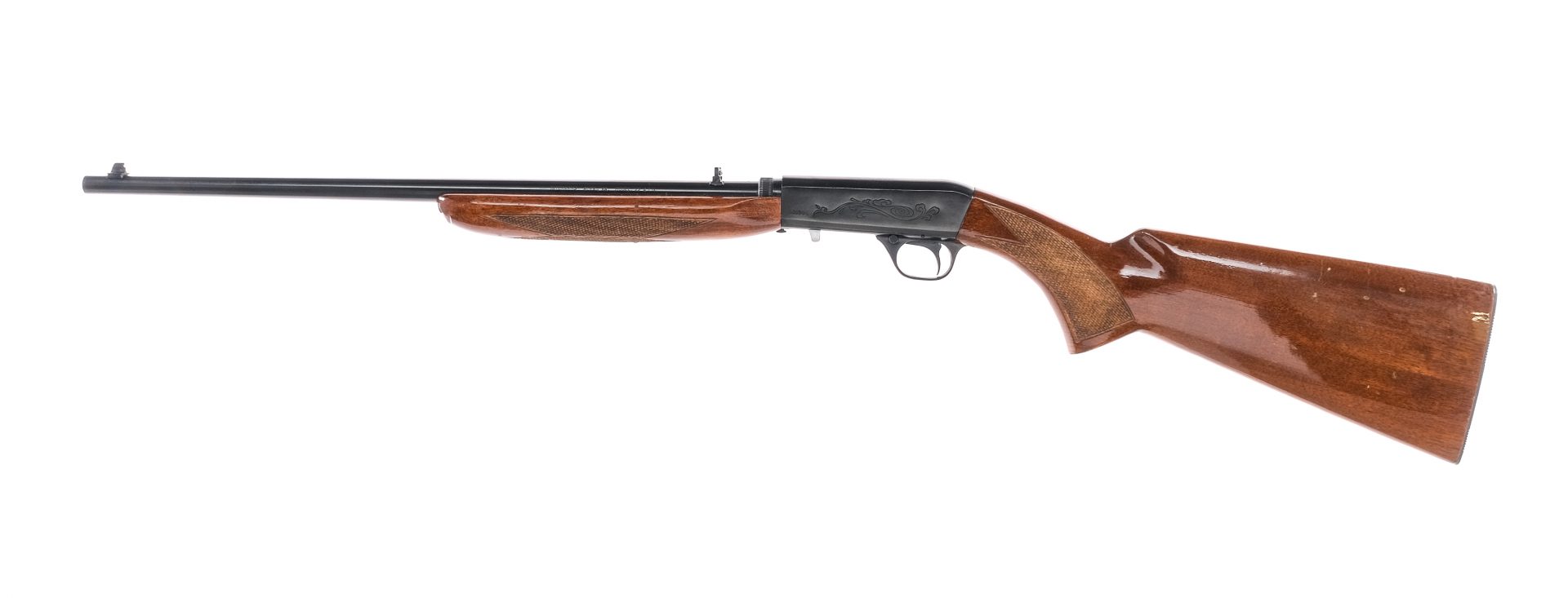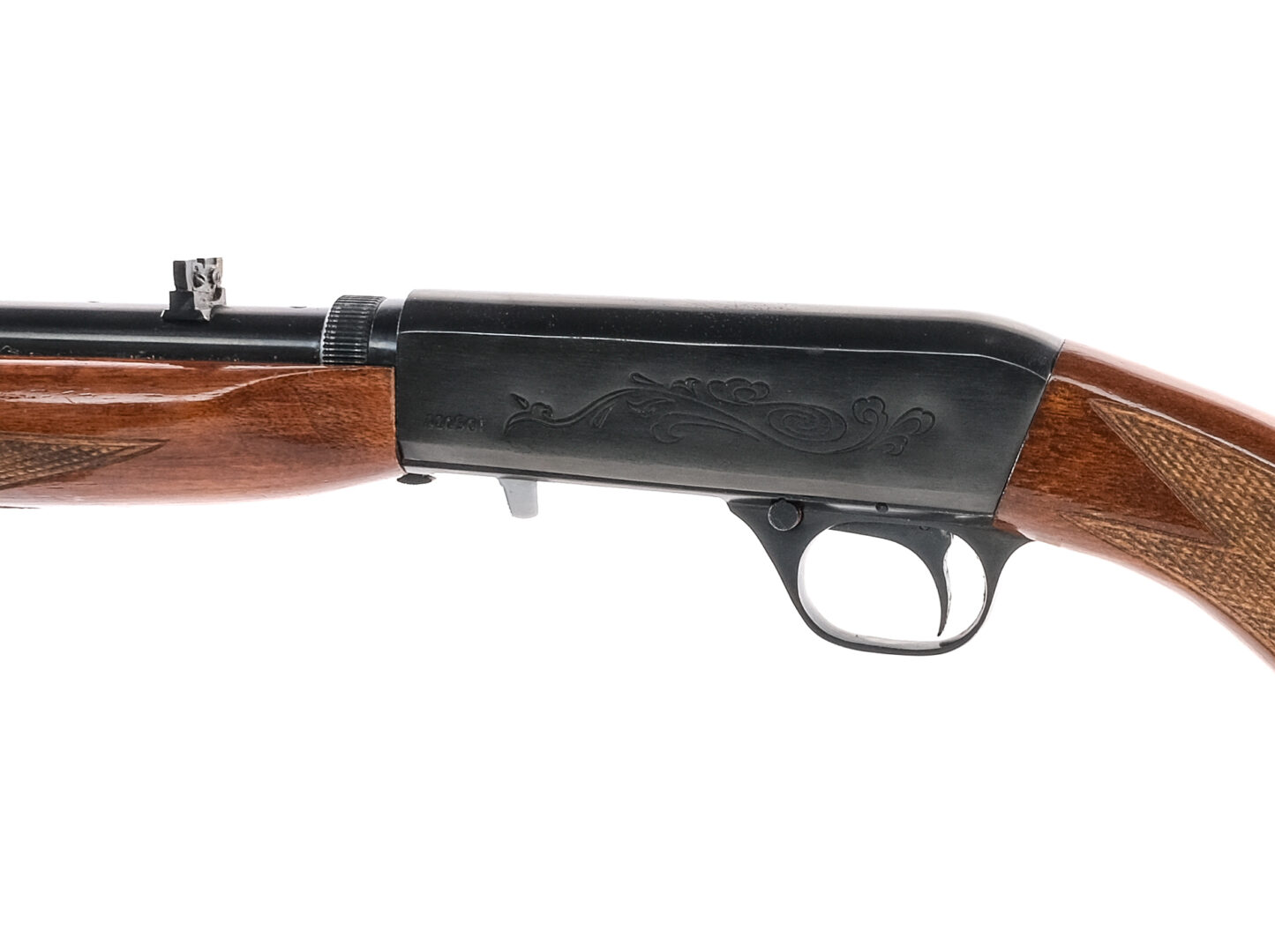 Description Norinco model 22 ATD semi-automatic rifle chambered in .22 Long Rifle with a 19.5″ barrel and an 11 round tube magazine. Imported by Interarms. Serrated metal butt plate. Checkered wood stock and forend. Blued engraved receiver, barrel, trigger and trigger guard. Checkered push button safety at front of trigger guard. Front blade sight and rear leaf sight. Two tapped holes on the barrel for mounting an optic. Must ship to FFL holder. Conditon: Good with some dings throughout the wood, and light scratches an oxidation spots on the receiver. All bluing on the muzzle has been worn away. Clean rifled bore. Barrel Length: 19.5″ Serial: 310506 Manufacturer: NORINCO Caliber: .22 Long Rifle Model: 22 ATD Book# 01045
