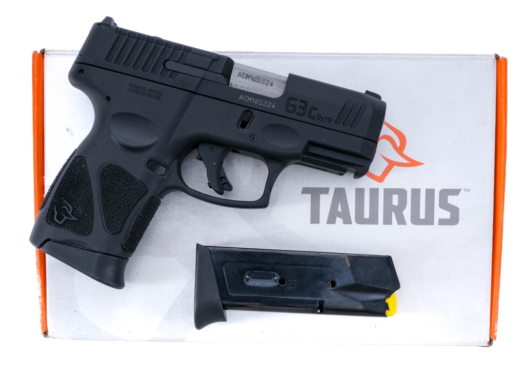 September 24, 2025Description Taurus G3C chambered in 9mm with two, ten round magazines and a 3.20″ barrel. Textured polymer frame with under barrel…