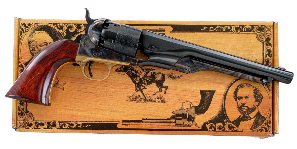 May 12, 2025Description A. Uberti/Cimarron Model 1860 Army in .44 caliber with a six round capacity and a 8″ barrel. Made in Italy…