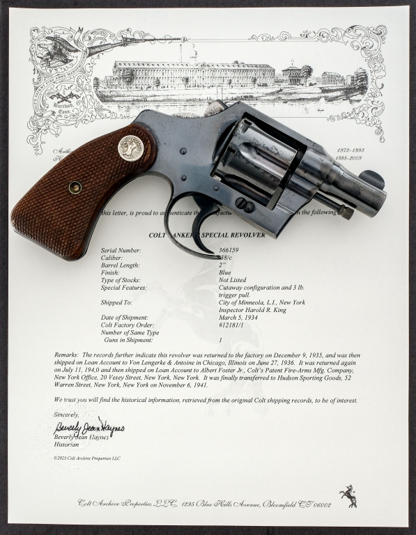 January 7, 2026Description Confirmed authentic via Colt Archives, see picture of Colt Letter. Letter is lengthy and includes a special provenance of appearing…