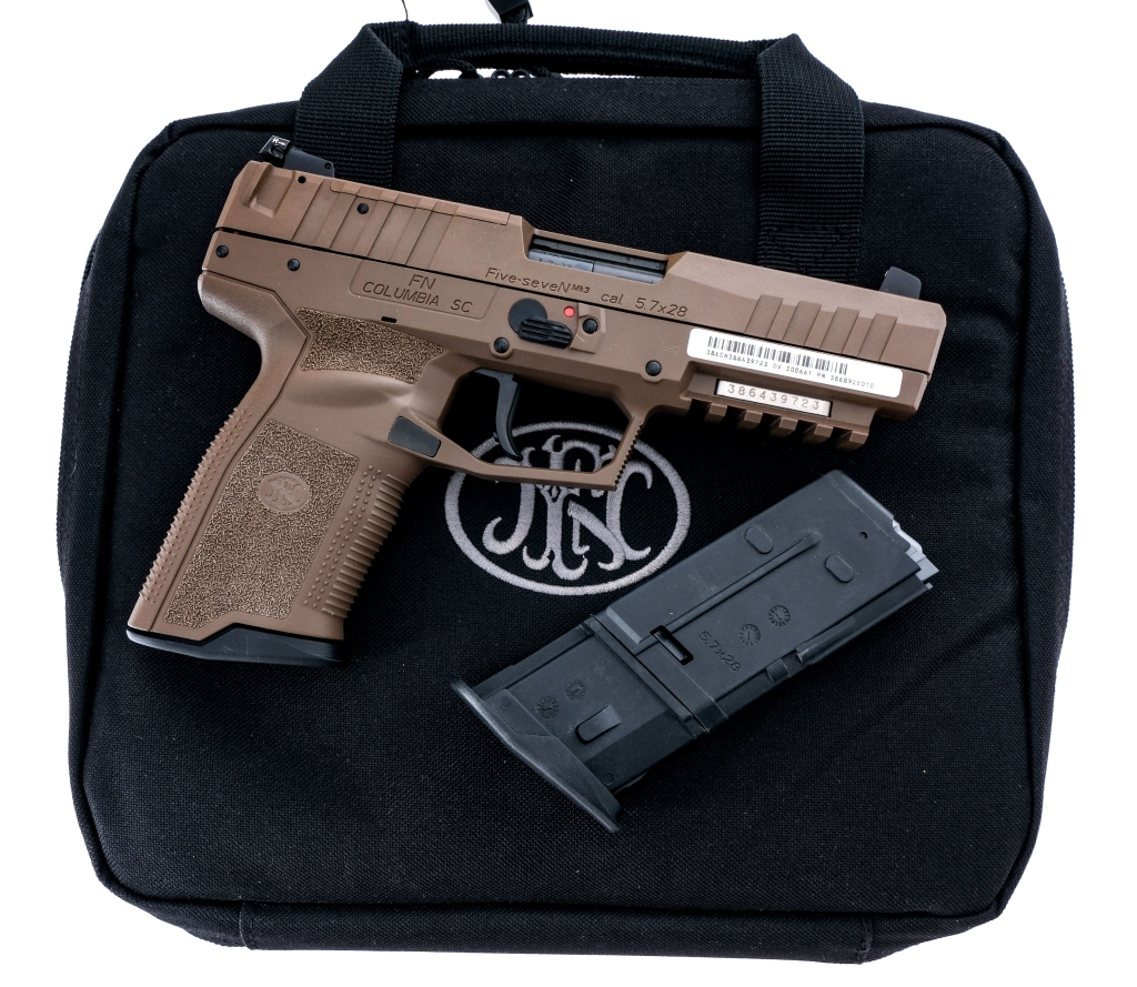 January 7, 2026Description FNH Five Seven MK3 MRD chambered in 5.7x28mm with two, ten round magazines and a 4.81″ barrel. Textured polymer FDE…
