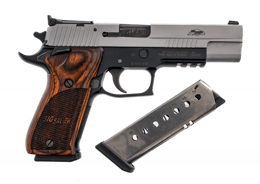 May 8, 2025Description Sig Sauer Custom Shop P220 Super Match chambered in .45 ACP with two, eight round removable magazines and a 5″…