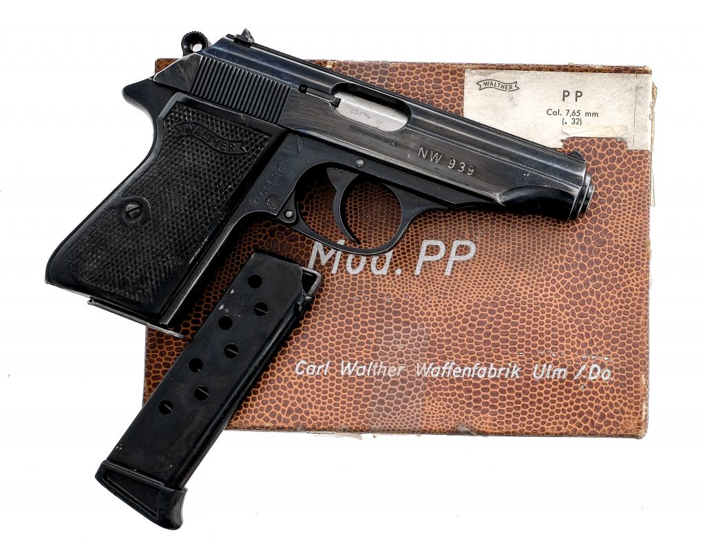 May 8, 2025Description Walther PP in 7.65mm (.32 ACP) with two, seven round removable magazines and a 3.75″ barrel. West German Police marked….