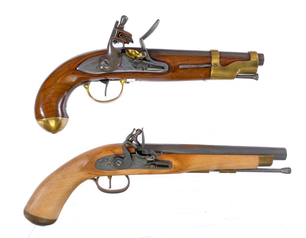 May 7, 2025Description Estate lot with two black powder flintlock pistols. Jukar in .45 caliber with a single round capacity and a 8.5″…