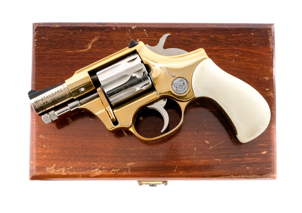 April 18, 2025Description Hi-Standard Model R-101 Sentinel Gold in .22 caliber with a nine round capacity and a 2.5″ barrel. Smooth white composite…
