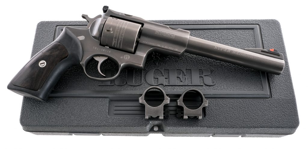 April 18, 2025Description Ruger Super Red Hawk in .454 Casull with a six round cylinder capacity and a 7.5″ barrel. Smooth wood and…
