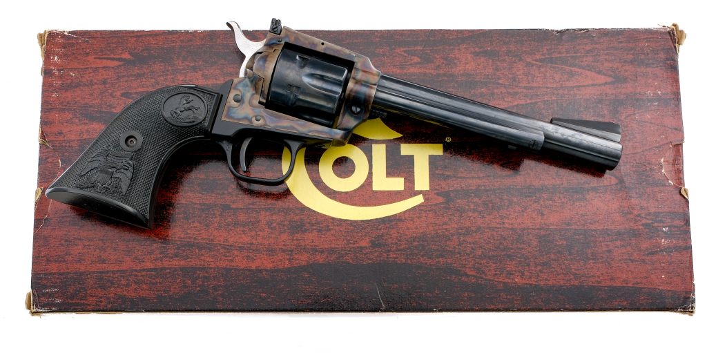 April 25, 2025Description Colt New Frontier Single Action Army in .22 Long Rifle with a six round capacity and a 6″ barrel. Checkered…