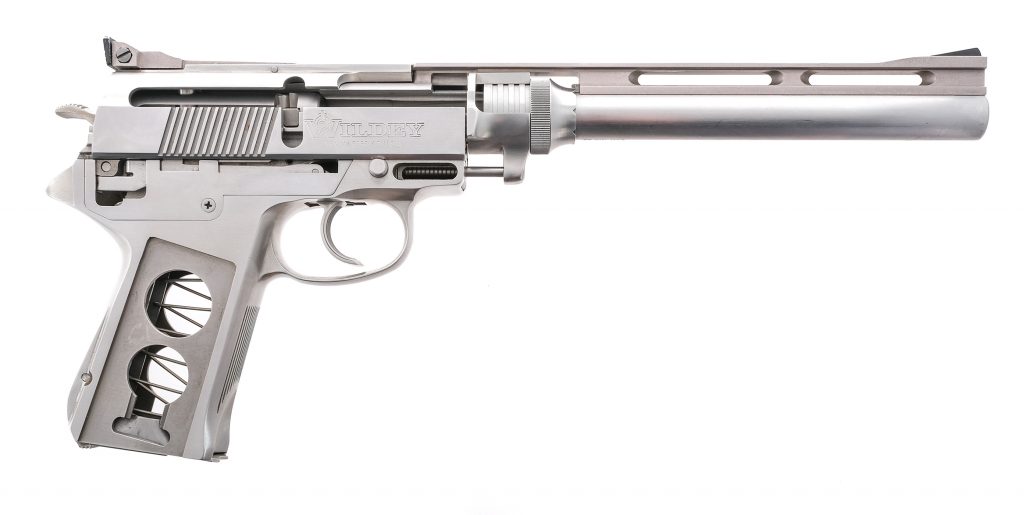 April 17, 2025Description Personally Serialized Experimental Wildey Hunter, .44 bore, unknown chambering. with one, removable magazine and a 10″ top vented rib barrel….
