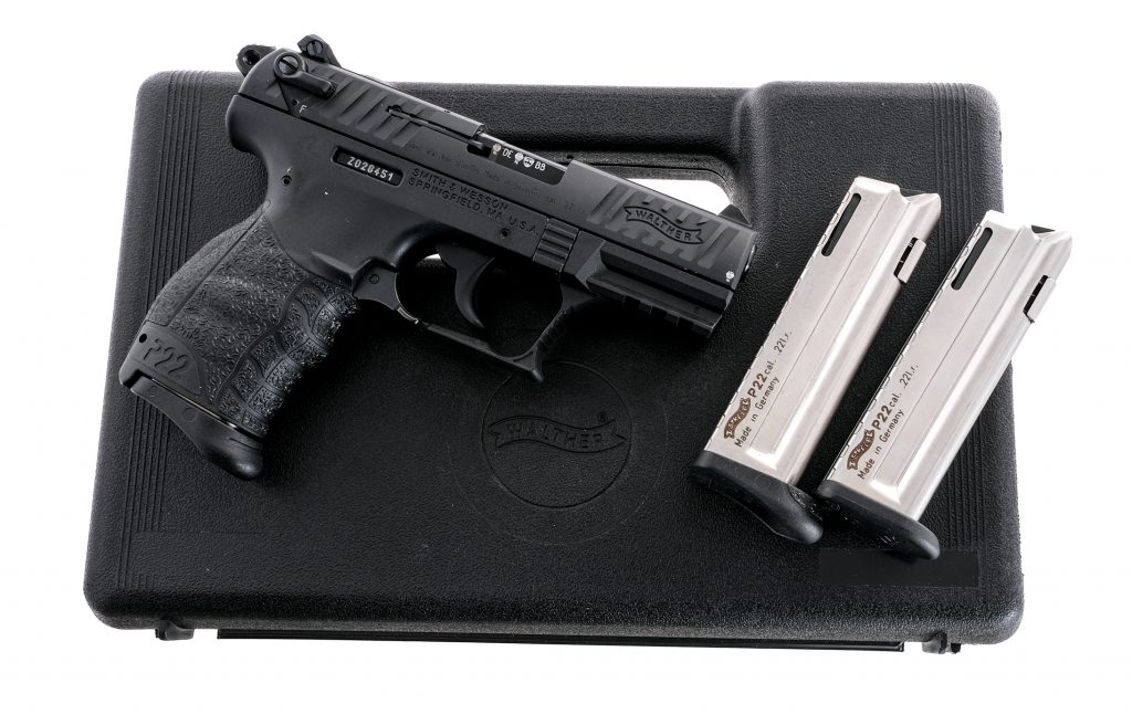 April 18, 2025Description Walther P22 chambered in .22 long rifle with three, ten round removable magazines and a 3.42″ barrel. Black polymer frame…