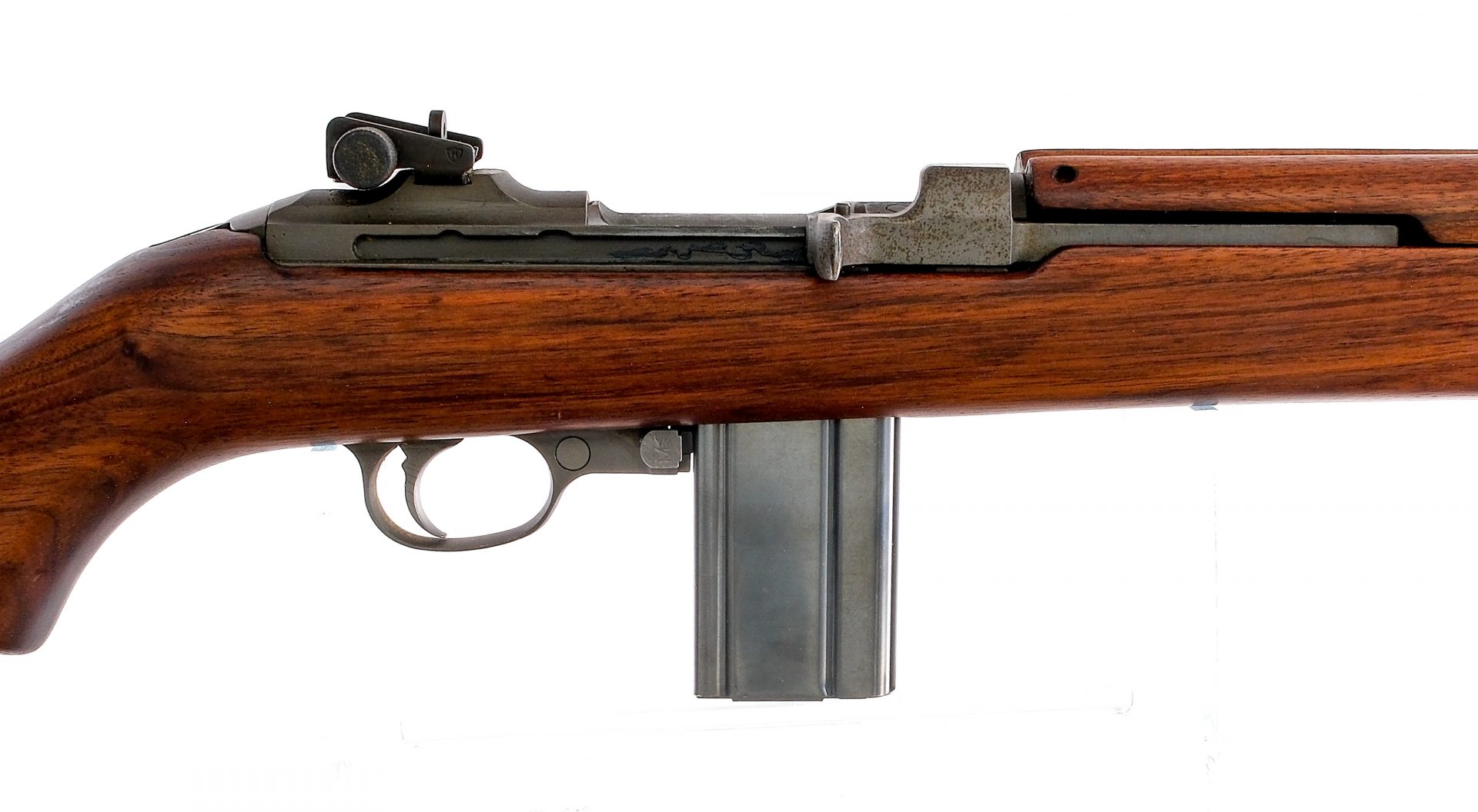 Description Quality Hardware M1 Carbine chambered in .30 Carbine with seven total magazines of varying capacity, and a 18″ Underwood barrel. The receiver was manufactured between September 1943 and May 1944 with serial number 4664239. The barrel is dated 11-43 and is marked with a Flaming Bomb proof. Type 3 barrel band with bayonet lug and attached M4 bayonet. Early war flat top bolt. Push button cross bolt safety and push button magazine release. Adjustable rear sight with protected front blade. Smooth high wood straight stock with oval cut and checkered metal butt plate. Early two rivet wood top handguard. Comes with a M4 bayonet with scabbard and canvas frog, a extra M1A1 folding stock, and seven magazines. The magazines are as follows, three, thirty round magazines, three, fifteen round magazines, and one, five round magazine. The scabbard is marked “U.S. M8A B . M . CO.” and appears to have been repainted. The bayonet is marked “U.S.M4 CAMILLUS”. Must ship to a FFL or C&R holder. Check local laws regarding “High Capacity” magazines BEFORE bidding. Condition: Very Good with the rifle displaying light scratches and edge wear from normal handling and operation. Speckling of metal oxidation on the operating rod and the butt plate. General finish wear/light patina. The barrel band appears to have been installed aftermarket with signs/marks of fitment and a miss-matched finish. The stock appears to have been sanded and refinished at some point with light handling wear. Bright and clean bore with strong rifling. The bayonet has scratches, scuffs, sharp edge wear, and nicks on the blade. The guard is a bit loose and has some wobble. Light scratches and scuffs on the M1A1 stock, and metal oxidation on the wire stock and butt plate. Barrel Length: 18″ Serial: 4664239 Manufacturer: Quality Hardware Year: 1943 Caliber: .30 Carbine Model: M1 Carbine Book# 02308