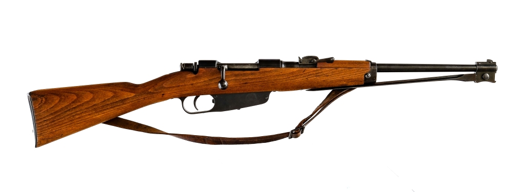 Description Italian RE Terni 1891 Carcano Cavalry Carbine chambered in 6.5x52mm with a six round en bloc clip fed magazine and a 17.63″ barrel. Front folding bayonet. Blued barrel, band, receiver, turn down bolt, trigger, and magazine. Adjustable rear sight and fixed front blade. Smooth wood top forend and straight grip stock with metal butt plate. Must ship to a FFL or C&R holder. Condition: Good/Very Good having been cleaned/restored. Light scratches, sharp edge wear, and cosmetic handling wear. Light wear on the operational parts from use. Some spots of patina and metal oxidation. The wood has been sanded and refinished. The bore condition is unknown, because it is plugged with cosmoline. Barrel Length: 17.63″ Serial: YL2725 Manufacturer: RE TERNI Caliber: 6.5x52mm Mannlicher-Carcano Model: 1891 Cavalry Carbine Book# 07856