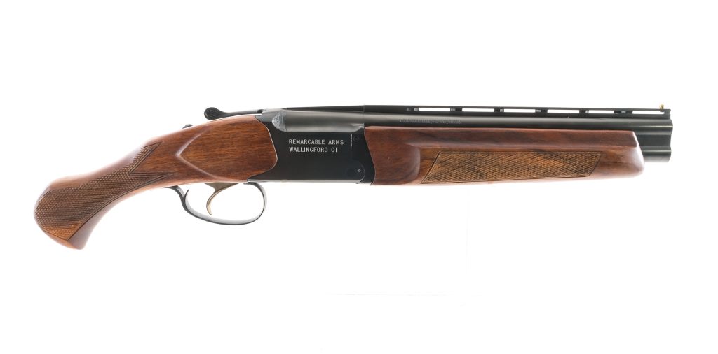 Description Custom made Remarcable Arms/Remington SPR 310 in 20 gauge 2 3/4″-3″ with a 13″ over under top rib vented barrel. Checkered bobbed birds head grip and front forend. Blued trigger guard, checkered top lever, receiver and barrels. Case colored untextured trigger. Rear tang located slide button safety. Front fixed brass bead sight. Must ship to a FFL holder. NFA Weapon, ready to ship to your dealer for transfer. Needs Form 3 and 200.00 tax stamp. Condition: Very good/Excellent with light scuffs and handling wear. Clean smooth bores. Barrel Length: 13″ Serial: 052797015R Manufacturer: Remarcable Arms Remington Gauge: 20 Model: SPR 310 Book# NFA-43