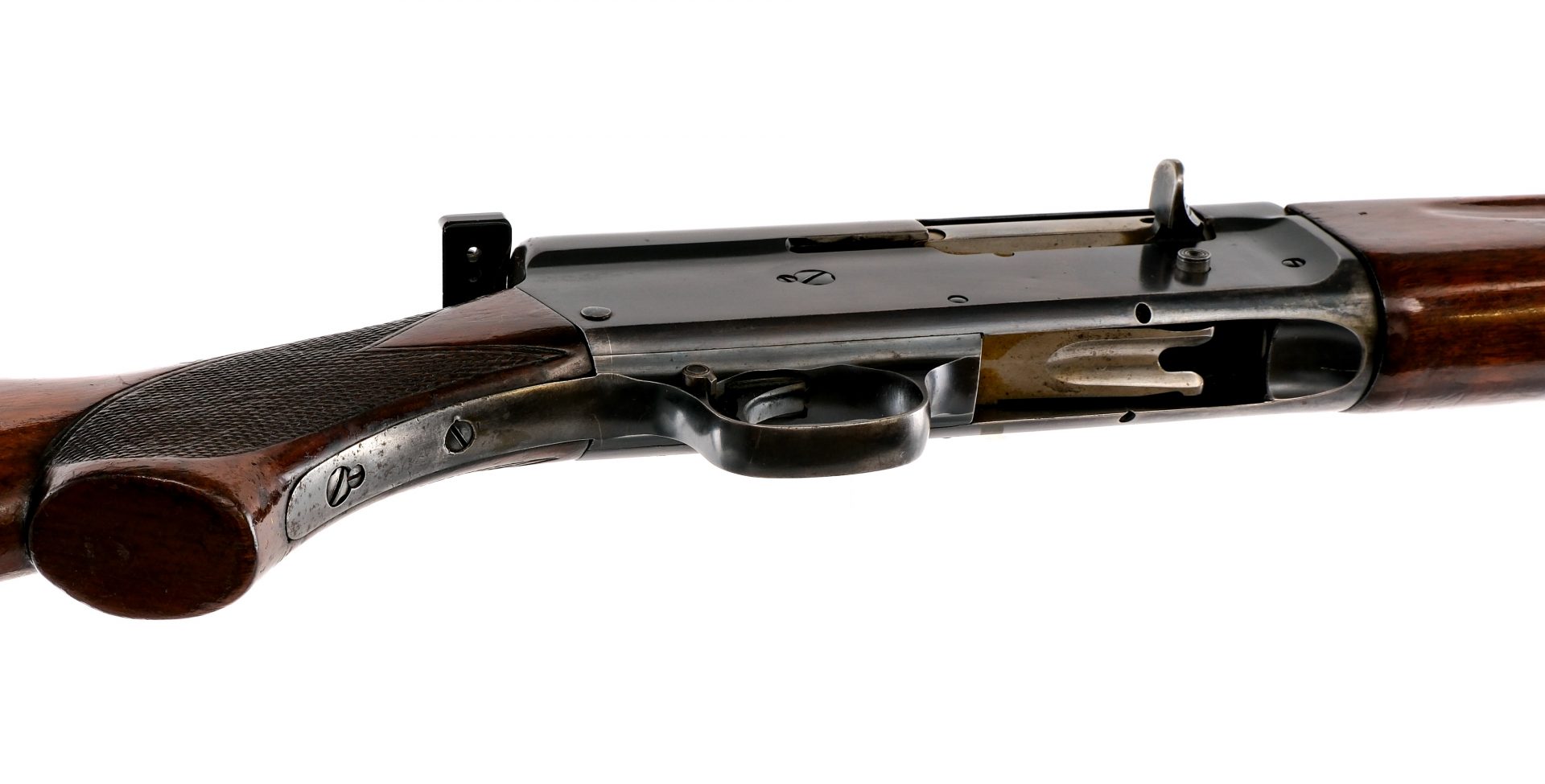 Description Remington Model 11 in 20 gauge with a two round capacity and a 25.5″ fixed Skeet Choke top rib vented barrel. Made in Ilion New York. Serrated composite butt plate. Checkered wood stock and front forend. Blued trigger guard, trigger, receiver and barrel. Rear trigger guard push button safety. Right side of receiver serrated charging handle and action release. Rear Williams peep hole sight and front fixed metal bead sight. Must ship to a C&R or FFL holder. Condition: Good with light scratches, dings, touches of rust and finish wear/loss. The smooth bore has a very light spot of oxidation. Barrel Length: 25.5″ Serial: 1020518 Manufacturer: Remington Gauge: 20 Year: 1930 Model: 11 Book# 05058