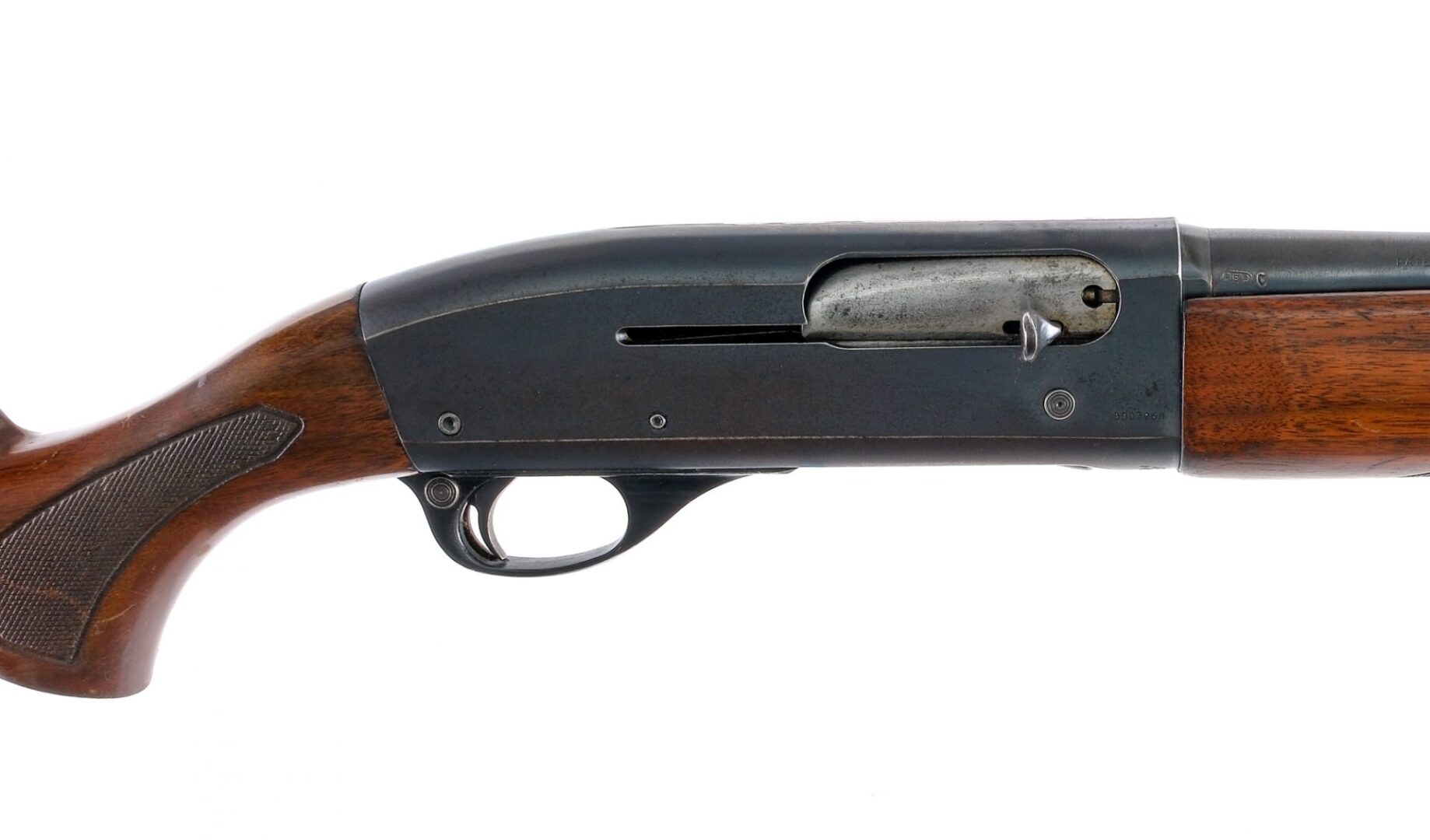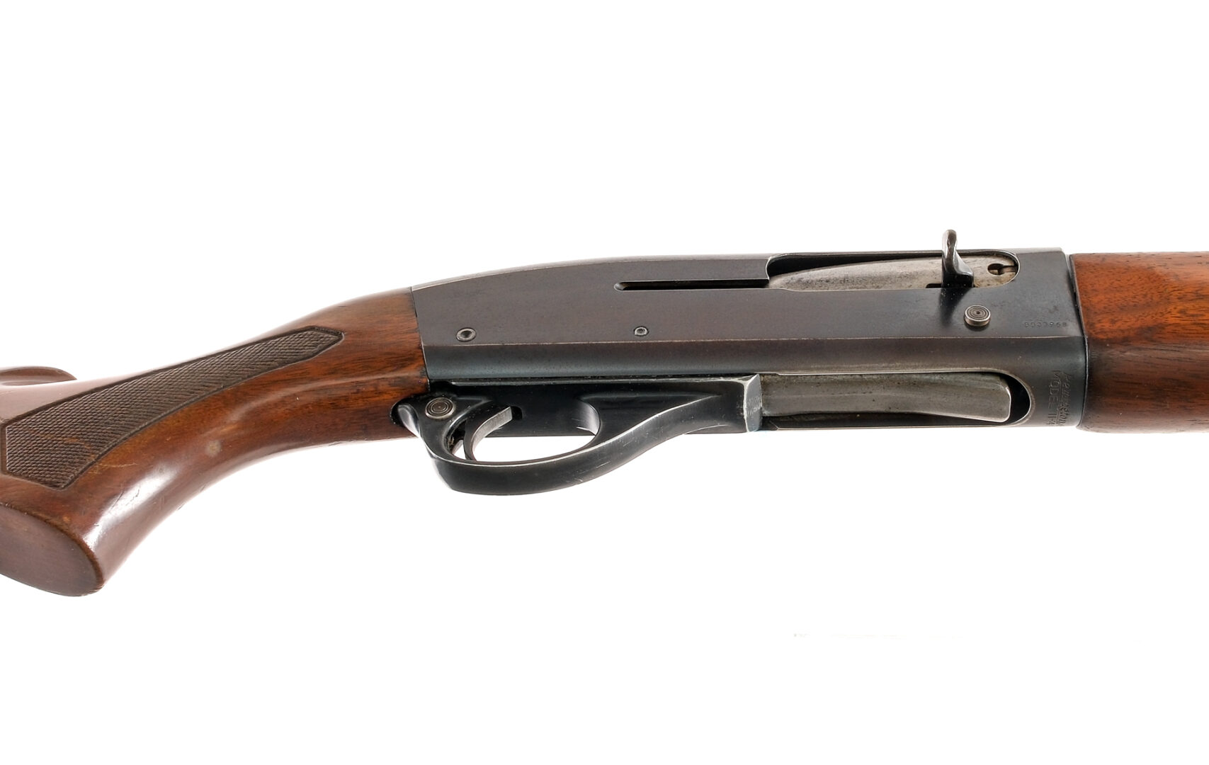Description Remington model 11-48 chambered in 16 gauge for 2 3/4″ shells with a three shell capacity and a 28″ barrel with a fixed modified choke. Manufactured in 1949 with date code “CUU”. Blued barrel, receiver, charging handle, and trigger. Unfinished bolt and loading gate. Cross bolt safety and receiver mounted bolt release button. Checkered wood forend and pistol grip stock with ribbed Remington butt plate. Silver bead front sight. Must ship to FFL or C&R holder. Condition: Good showing speckling of metal oxidation on most metal parts as well as finish patina. General scratches and sharp edge wear. The top of the receiver is painted red. The wood has varying scratches, scuffs, dings, and finish loss on the wood. Very clean smooth bore. Barrel Length: 28″ Serial: 5503968 Manufacturer: REMINGTON ARMS COMPANY Gauge: 16 Ga. Year: 1949 Model: 11-48 Book# 02454