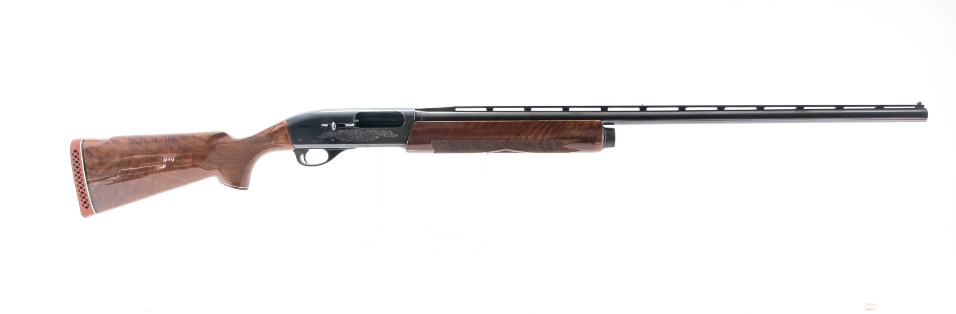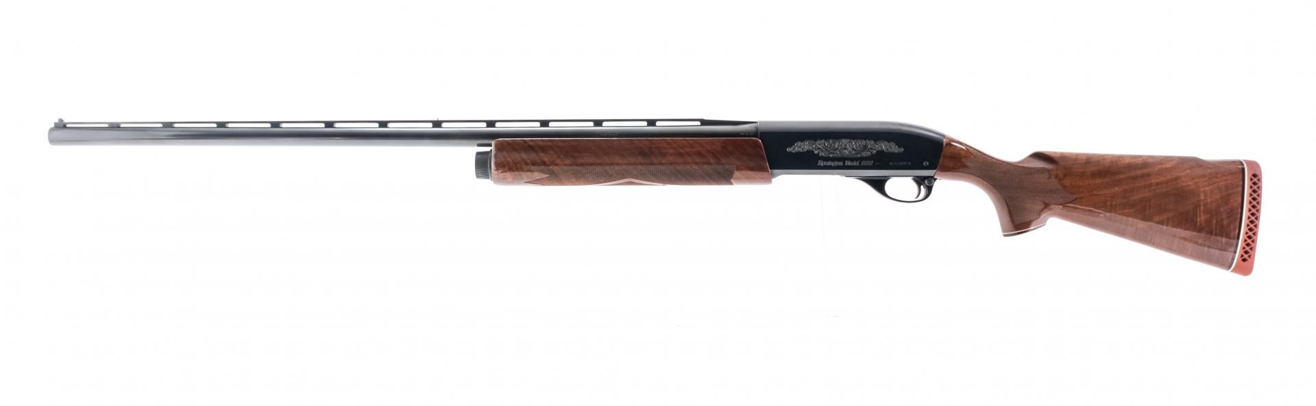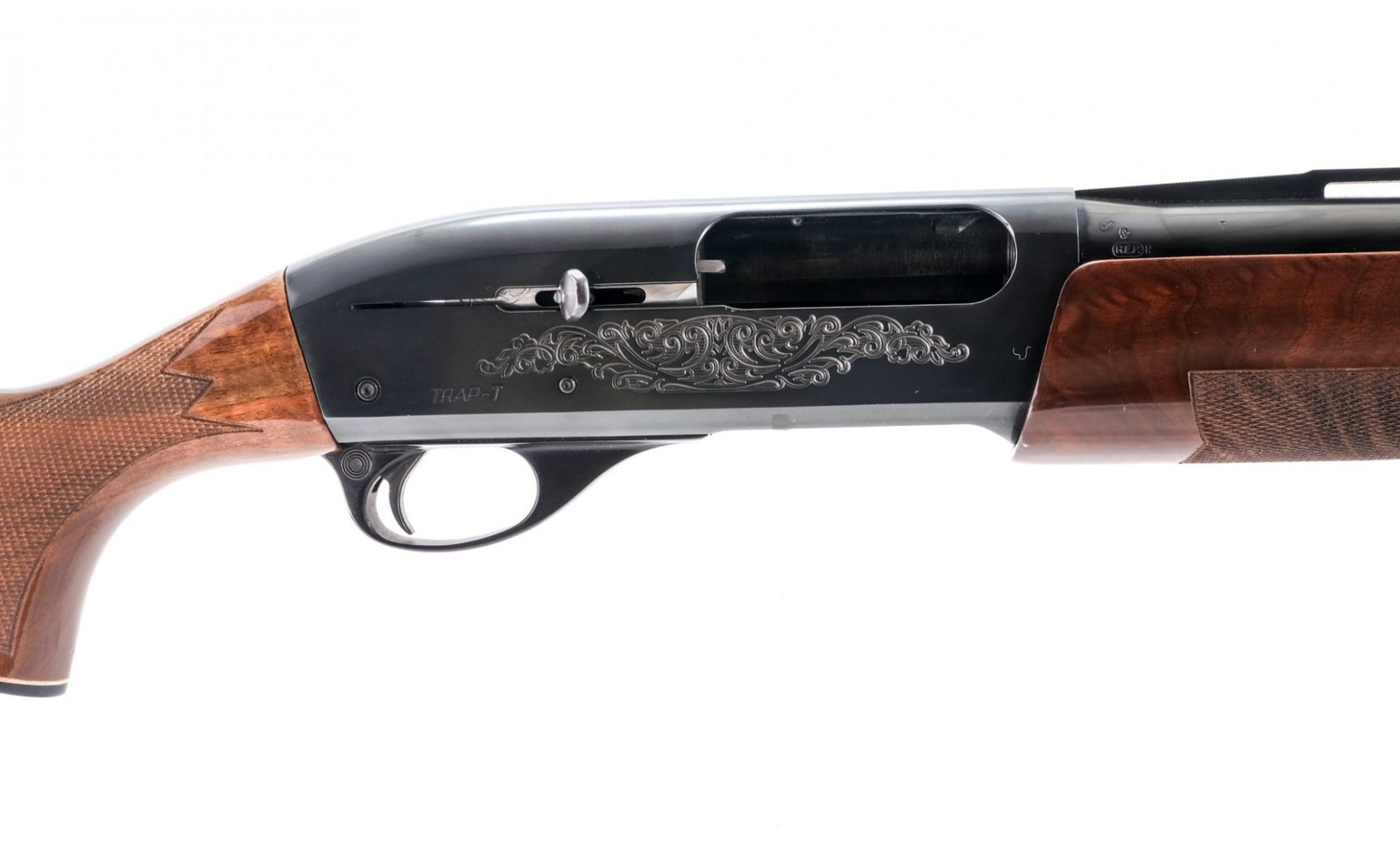 Description Remington 1100 Trap-T in 12 gauge 2 3/4″ with a four shot internal capacity and a 30″ FULL choke barrel. Remington rubber butt pad. Premium wood checkered stock and front foregrip. Blued receiver, trigger, guard and barrel. Serrated top ribbed barrel with fixed white bead front sight. Rear of trigger guard push safety. This semi-automatic shotgun must ship to a FFL holder.