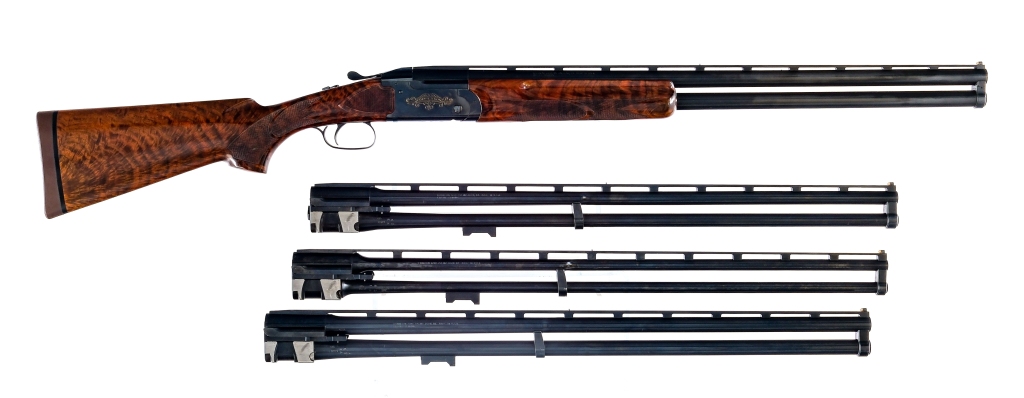 Description Remington 3200 Competition Skeet set in 12 gauge 2 3/4″ with a two round capacity and a 28″ over under top rib vented barrel. Formerly owned by a Remington employee, includes original purchase receipt from 1980. Includes four barrel sets in assorted gauges including 28 gauge, .410 gauge, 20 gauge and 12 gauge. The barrels have Ejectors. Rubber butt plate. Checkered premium figured pistol grip wood stock and front forend. Blued trigger guard, box lock receiver, top lever and barrel. Rear receiver tang safety/selector. Mid barrel metal bead and front composite bead sight. Comes in its factory locking fitted hard case with trigger tags and owners manual. Must ship to a FFL holder. Condition: Excellent with light scuffs and handling wear. Clean smooth bores. Measurements: LOP @ Heel= 14″ LOP @ Toe= 14 1/2″ Drop @ Comb = 1 1/2″ Drop @ Heel = 2 1/4″ Weight= 8.8 lbs. Barrel Length: 28″ Serial: OU46470 Manufacturer: Remington Gauge: 12 28 20 410 Year: 1980 Model: 3200 Competition Skeet Book# 07979