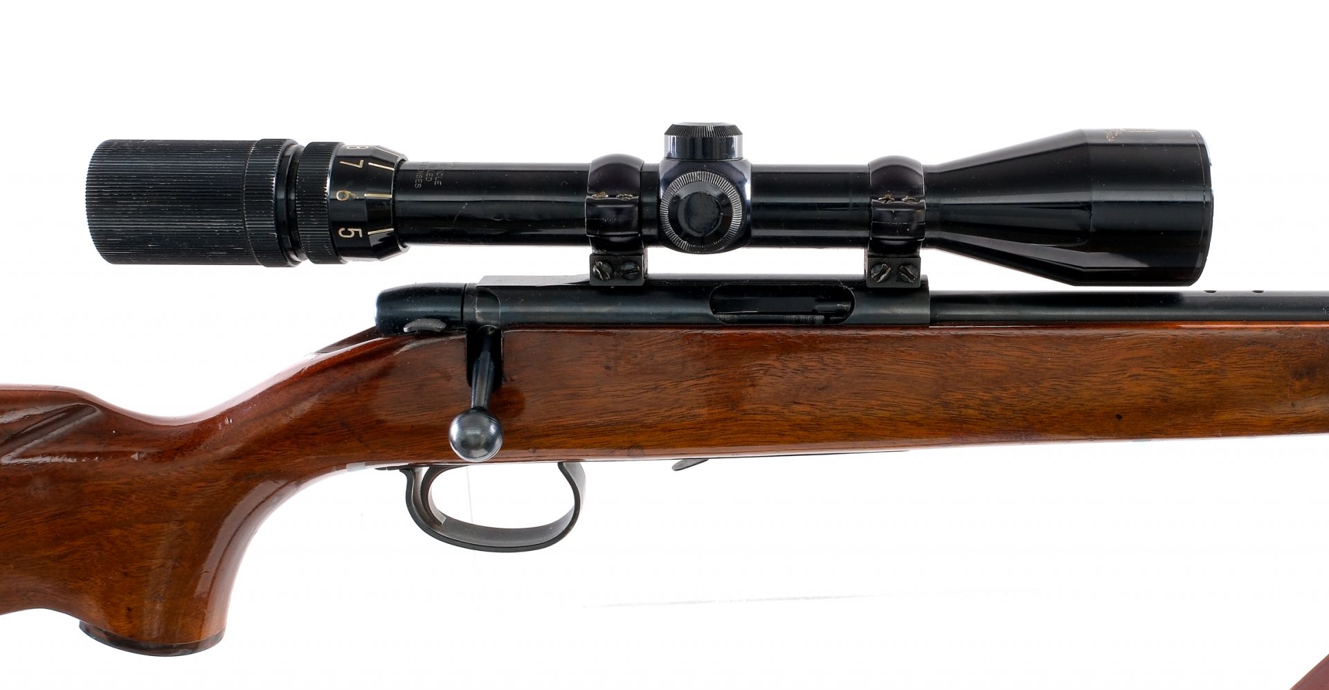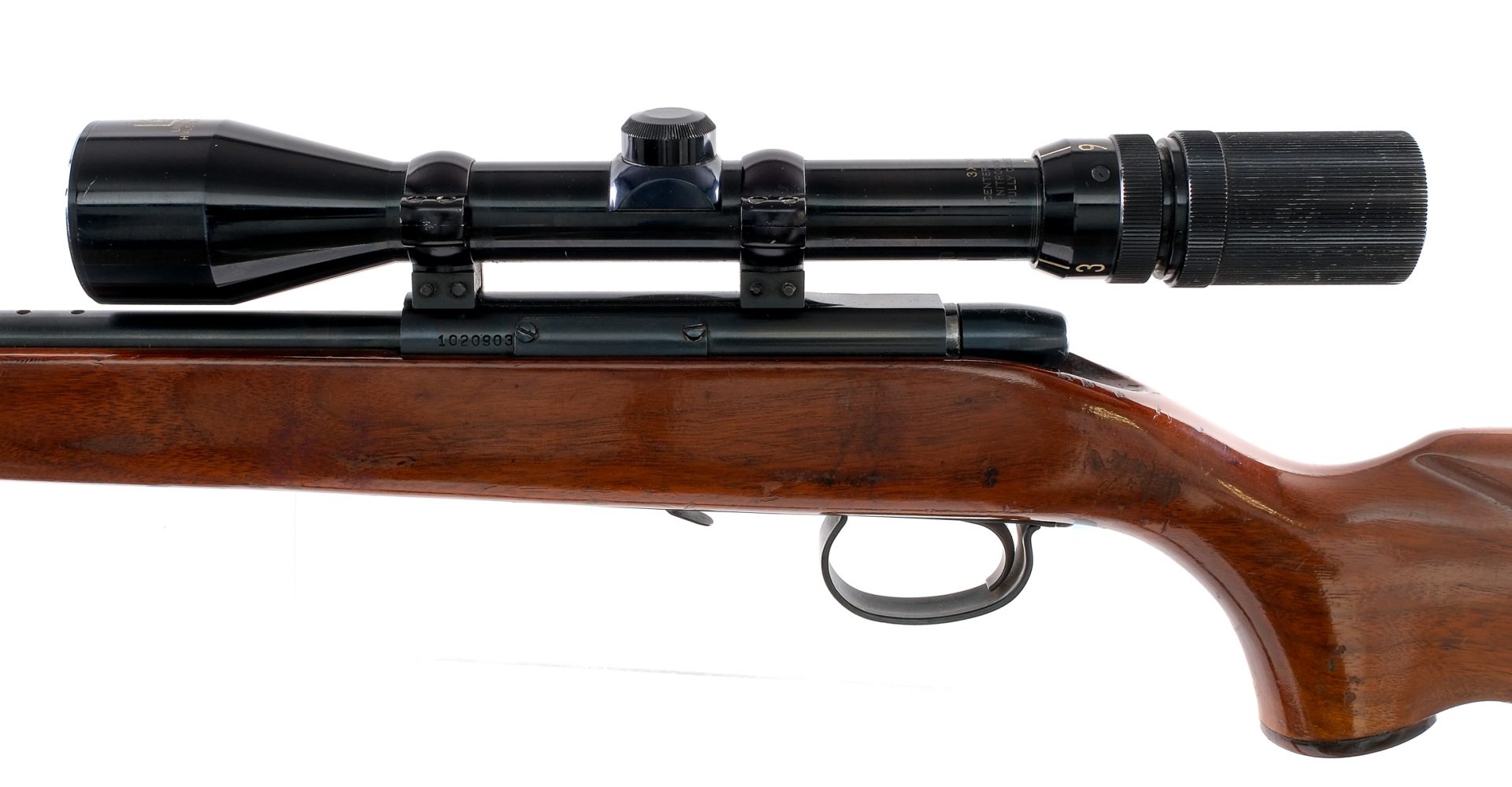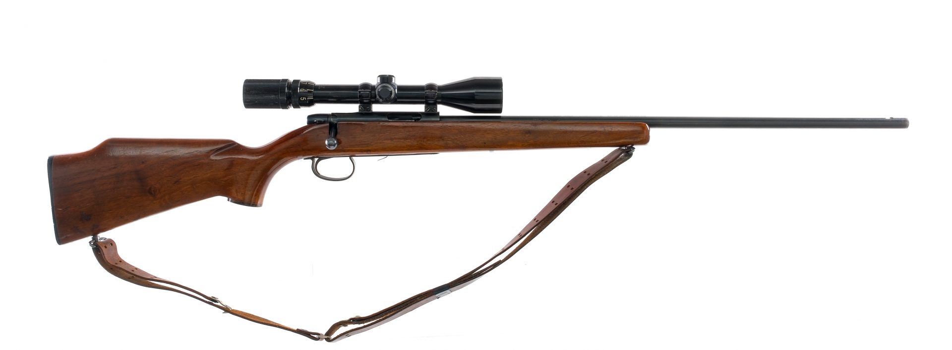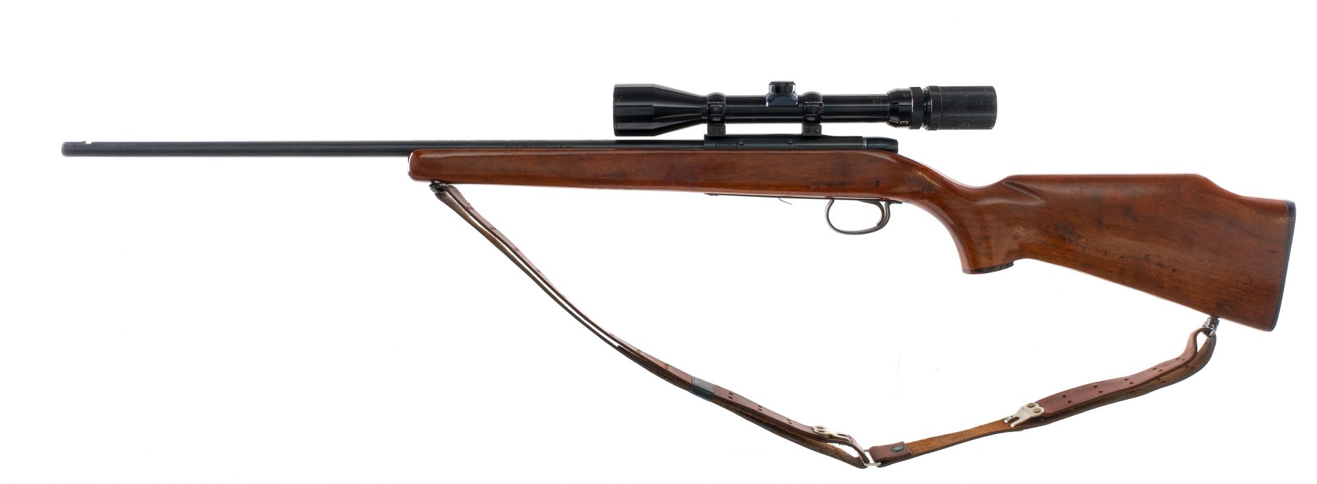Description Remington 591M chambered in 5mm Remington Magnum with a 24″ barrel. Magazine fed but missing its removable magazine. Blued barrel, receiver, bolt, trigger guard, and controls. Push to fire safety and paddle style magazine release. The top of the receiver is grooved and mounted with a Universal 3x-9×40 scope with clear and intact glass. Smooth wood pistol grip stock with checkered Remington butt plate. Front and rear sling swivels with mounted leather sling. Missing its front and rear iron sights. Must ship to FFL or C&R holder. Condition: Good with scratches, scuffs, and wear from handling and operation. Finish wear/loss around and near the muzzle. Light speckling of metal oxidation along the barrel and receiver. Varying scratches, scuffs, and dings in the wood. Very clean rifled bore. Missing magazine and iron sights. Barrel Length: 24″ Serial: 1020903 Manufacturer: REMINGTON ARMS COMPANY Caliber: 5mm Remington Mag Model: 591M Book# 02638