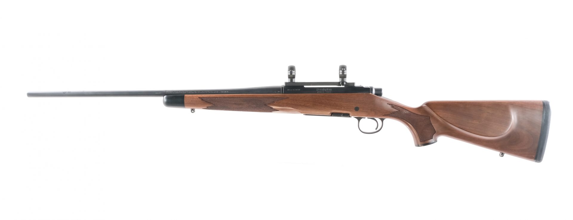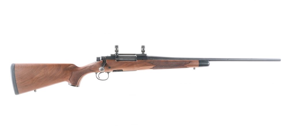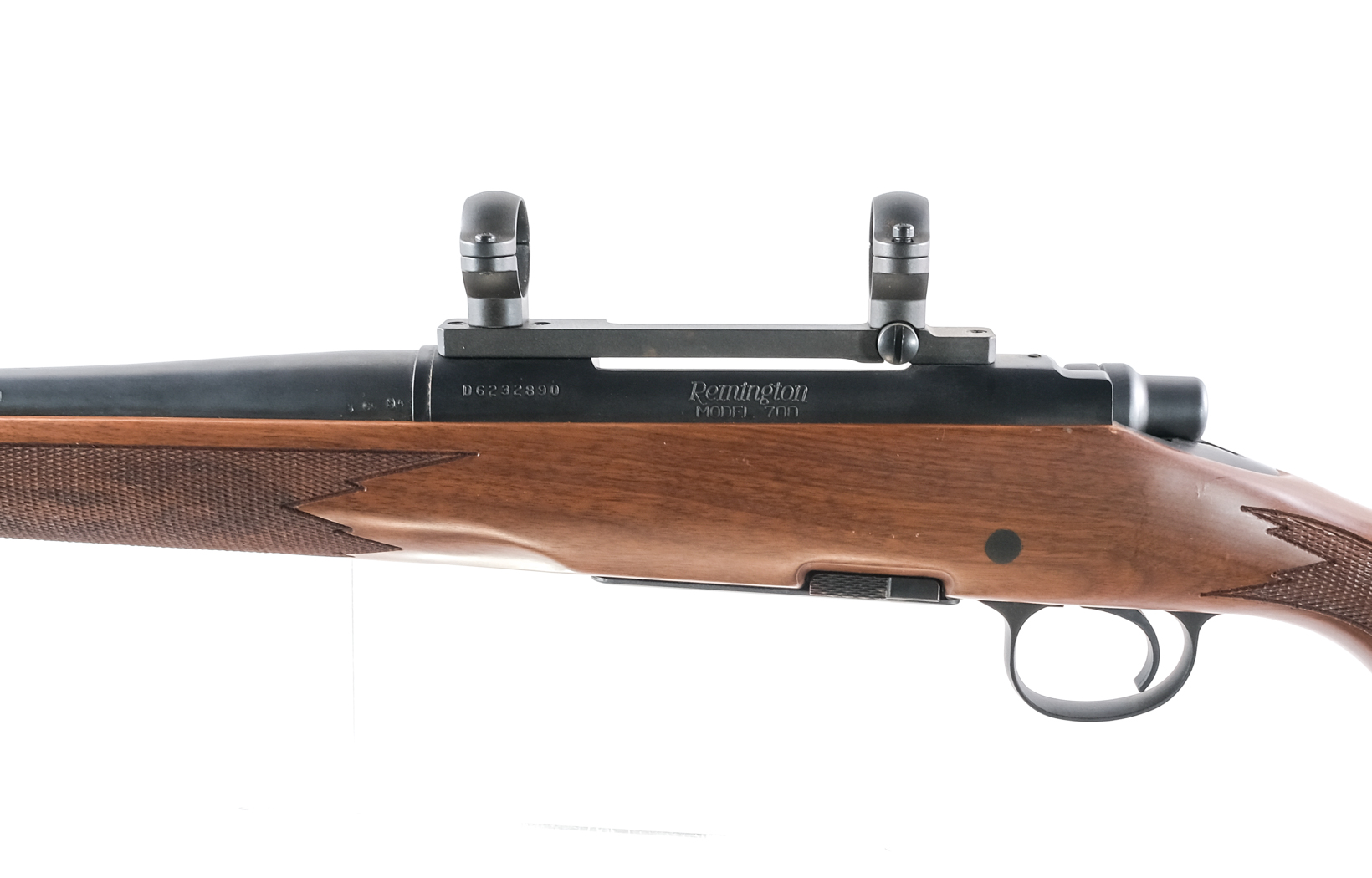Description Remington Model 700 in .280 Remington with one, four round removable magazine and a 22″ barrel. Rubber butt plate. Checkered Monte Carlo style stock and front forend. Blued trigger guard, serrated trigger, receiver, checkered bolt and barrel. Rear right side of receiver safety switch. Magazine located checkered magazine release. No fixed sights. Comes with a Leupold scope mount and rings. Metal eyelets for mounting a shoulder sling. Must ship to a FFL holder. Condition: Good/Very Good with light scuffs, touches of rust and handling wear. Clean rifled bore. Barrel Length: 22″ Serial: D6232890 Manufacturer: Remington Caliber: .280 Rem Model: 700 Book# 9-618